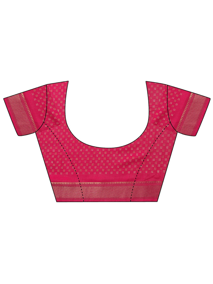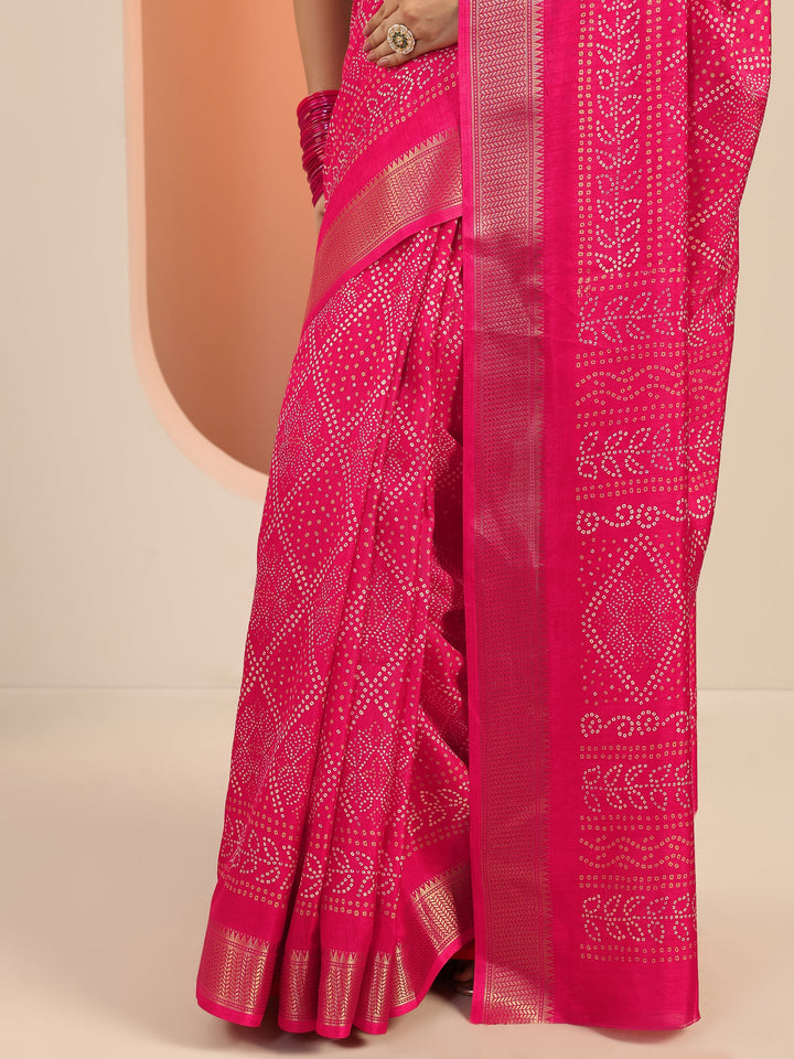 Pink Printed Silk Blend Saree With Unstitched Blouse Piece