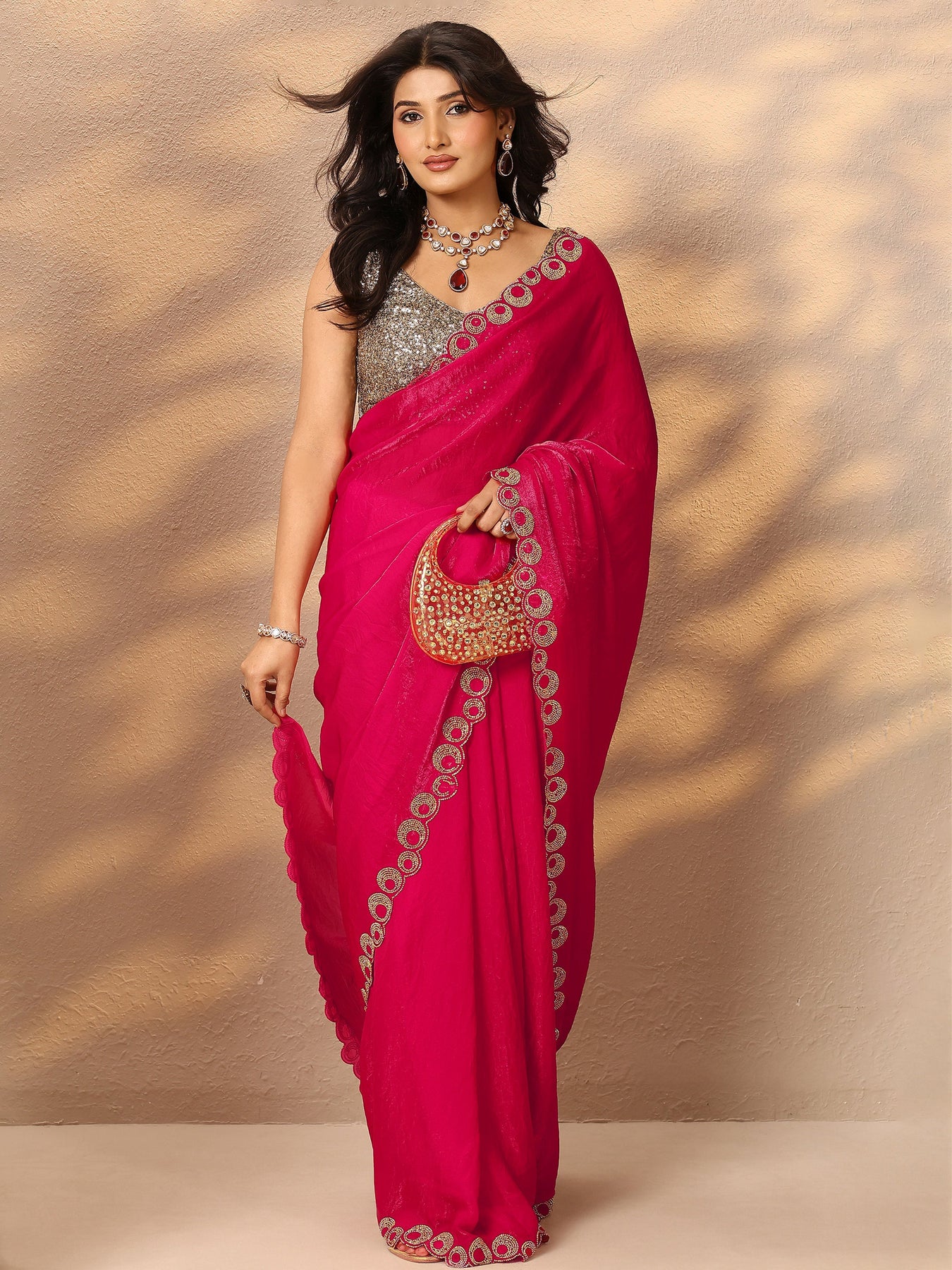 Our Pink Solid Sarees Silk Blend Saree Features Captivating Solid. Complemented With An Unstitched Blouse Piece. This Charming Saree Is Perfect For Festive Occasions.