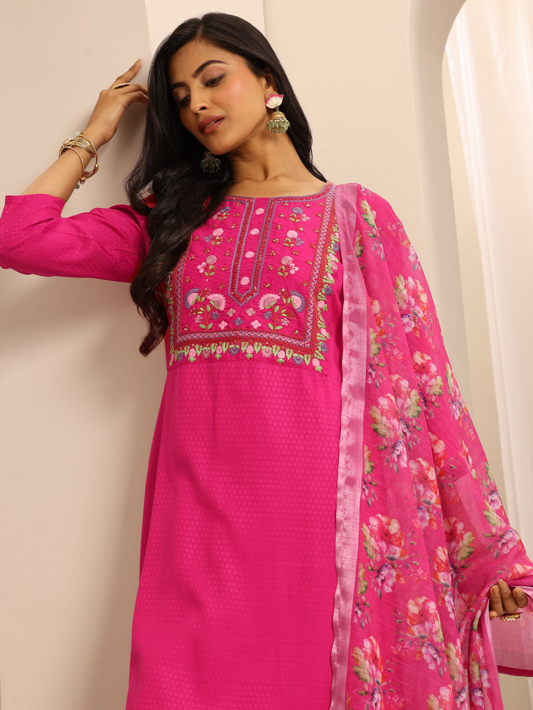 Pink Woven Cotton Blend Straight Suit Set With Dupatta