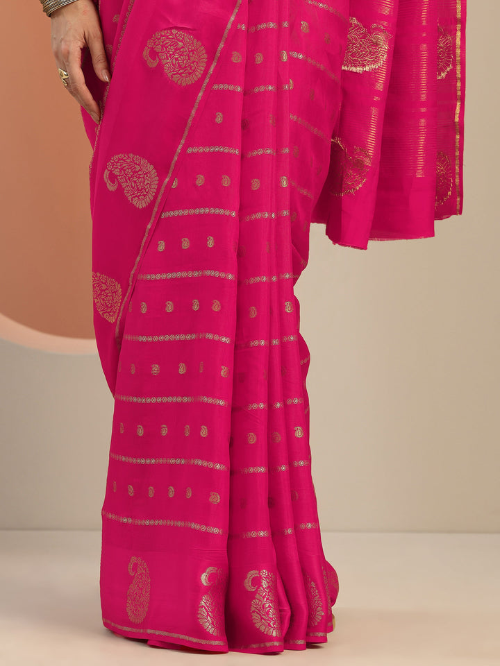 Pink Woven Design Silk Blend Saree With Unstitched Blouse Piece