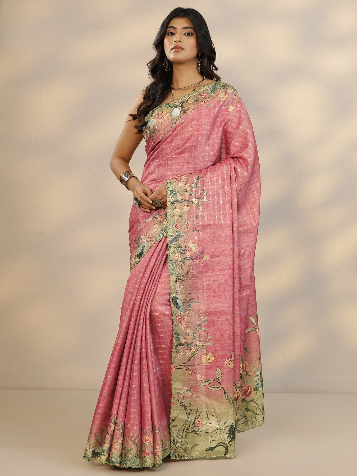 Pink Woven Design Silk Blend Saree With Unstitched Blouse Piece