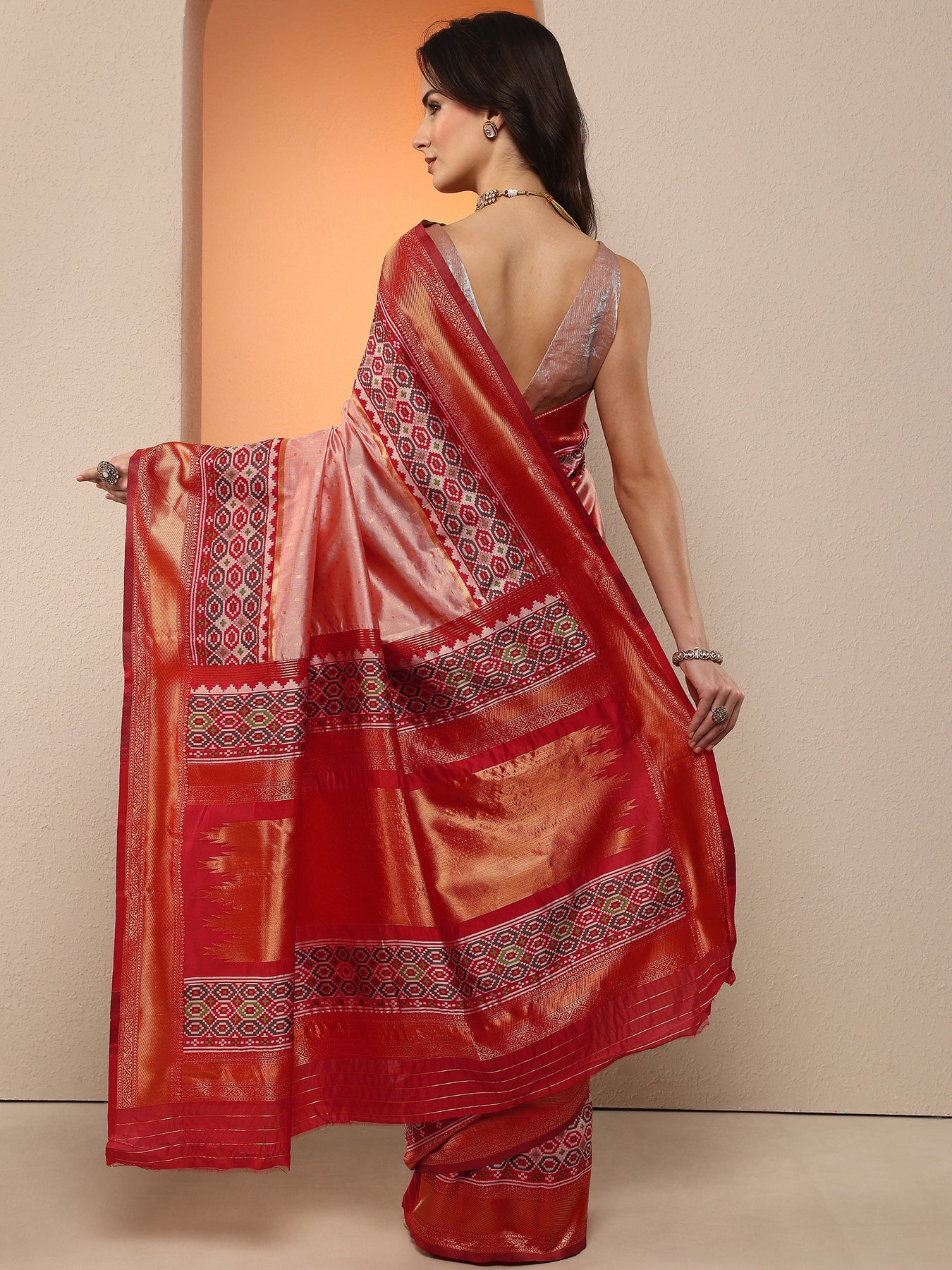Pink Woven Design Silk Blend Saree With Unstitched Blouse Piece