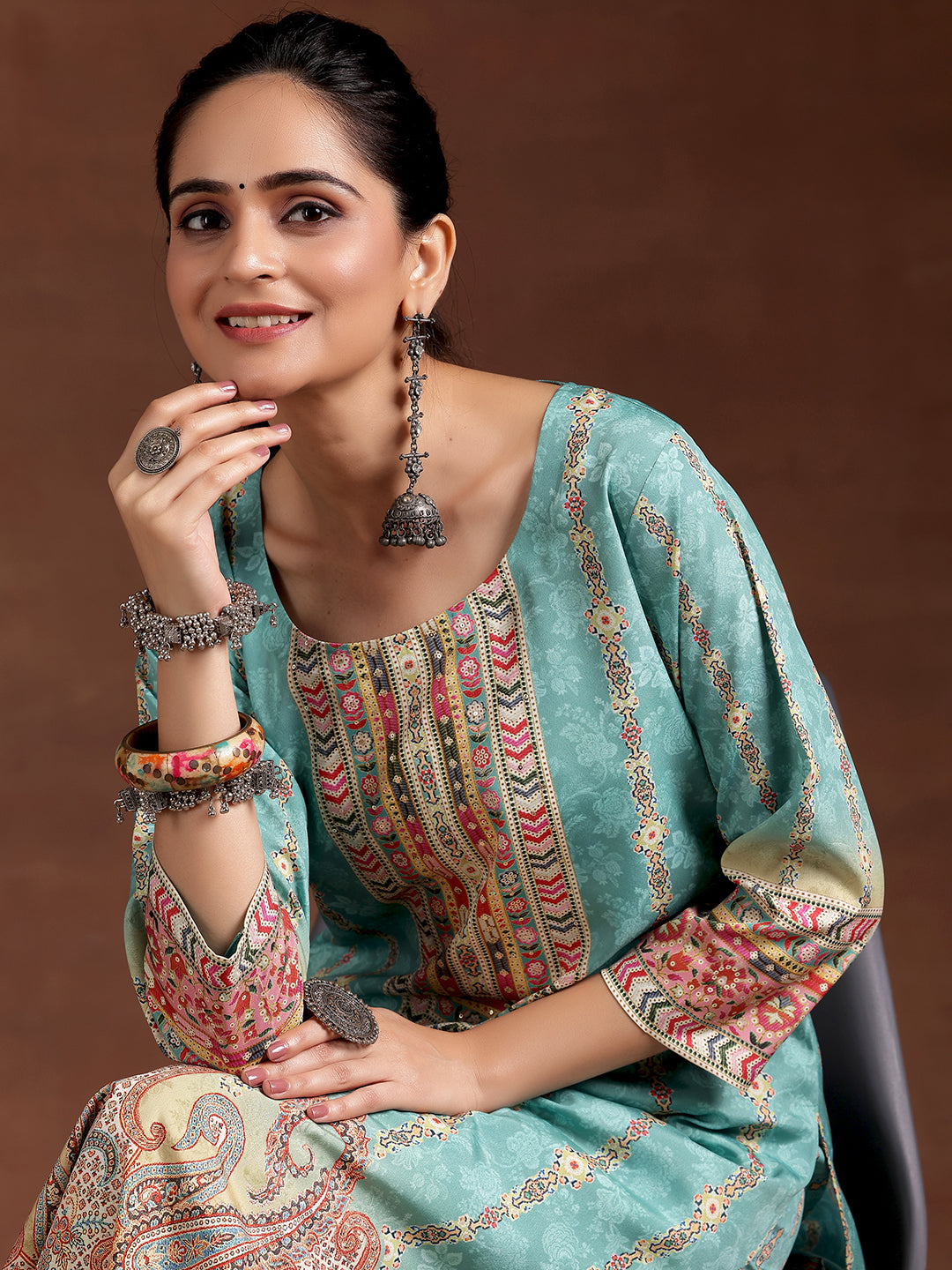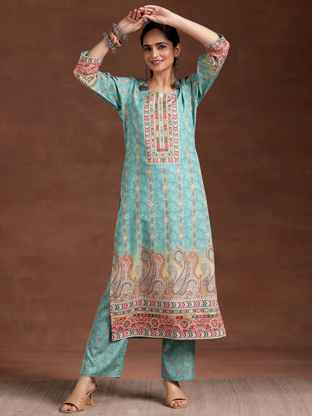 Pair with our solid-tone trousers, oxidised earrings, a fold-over clutch bag, and embroidered juttis to complete the look.