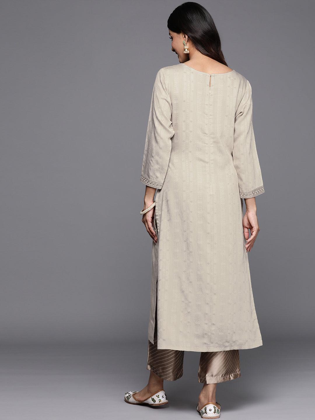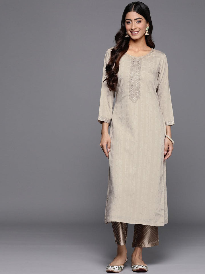 Taupe Woven Design Rayon Straight Kurta
