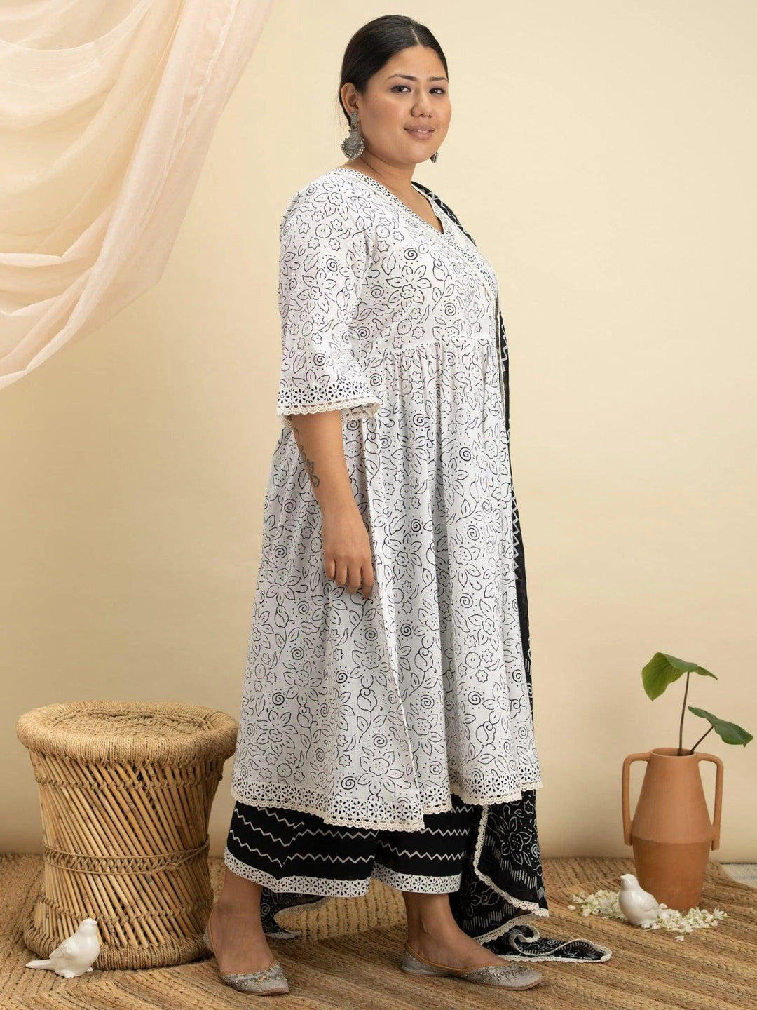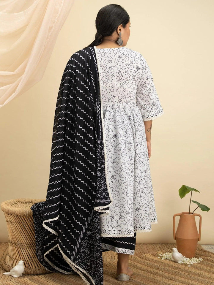 Buy White Cotton Printed Anarkali Kurta With Cotton Palazzo And Dupatta Online