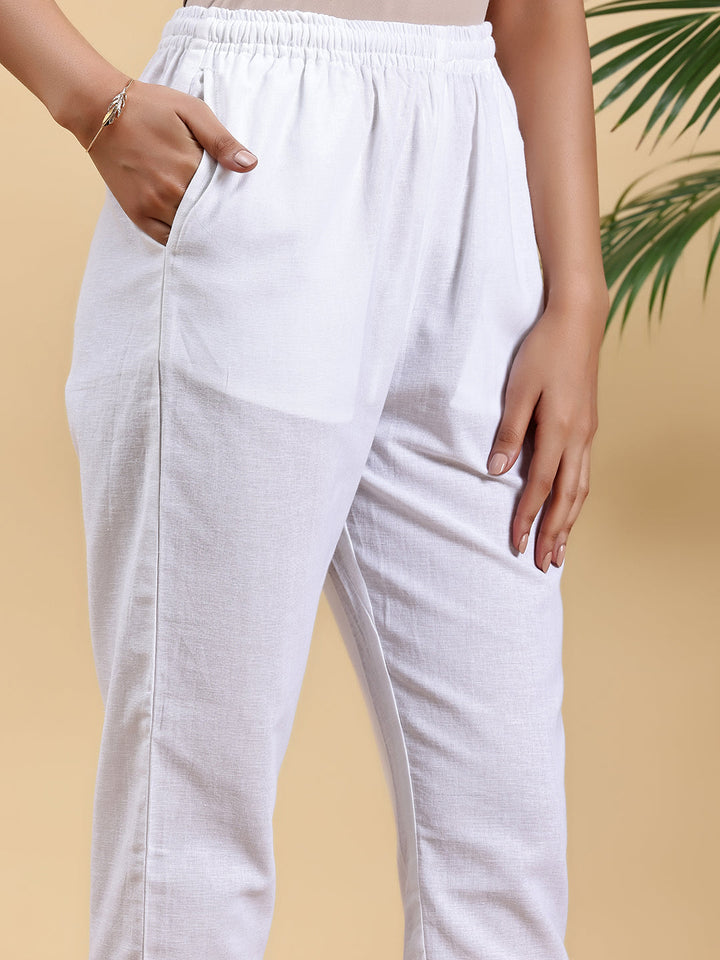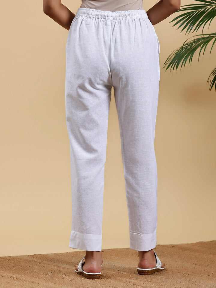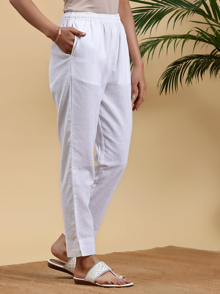 Our white straight-fit trousers, crafted in breezy fabric, features an elasticated waistband and roomy pockets.