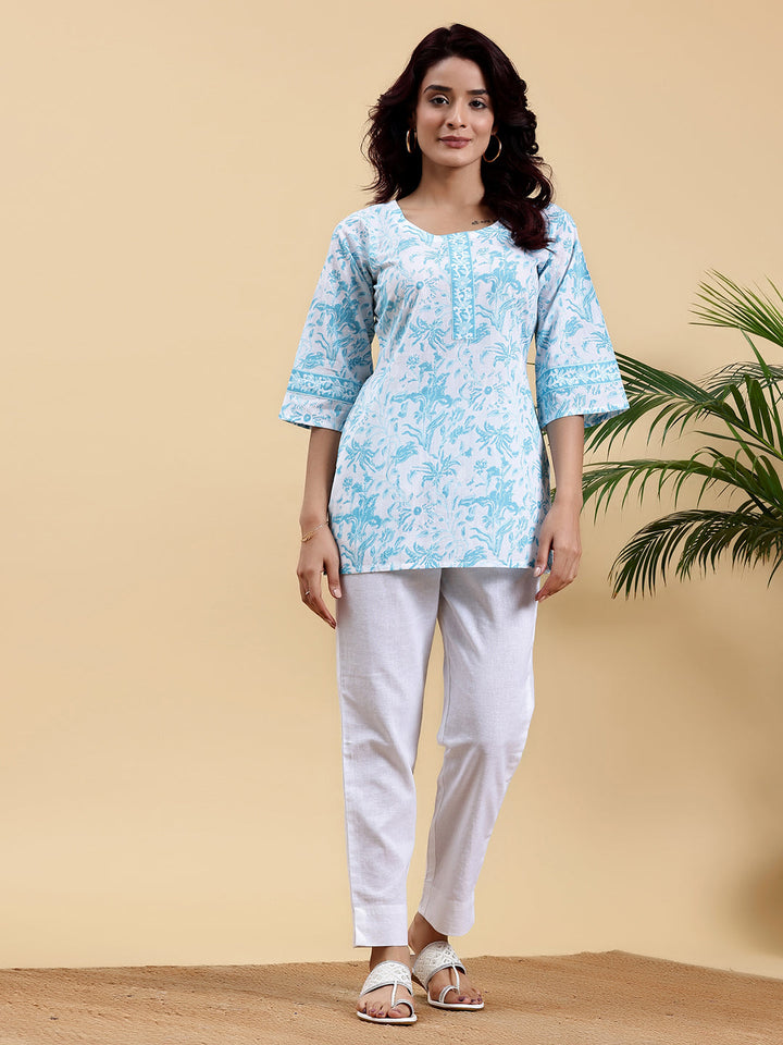 Pair it with our printed kurta, metallic jewellery, a fold-over clutch bag, and comfortable flats to complete the look.