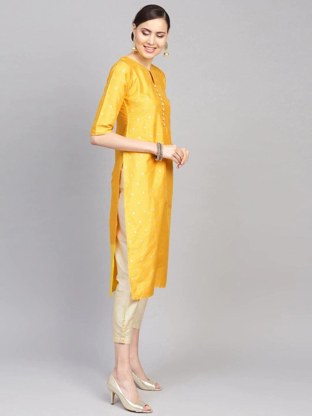 Yellow Chanderi Straight Kurta With Trouser And Ruffle Dupatta