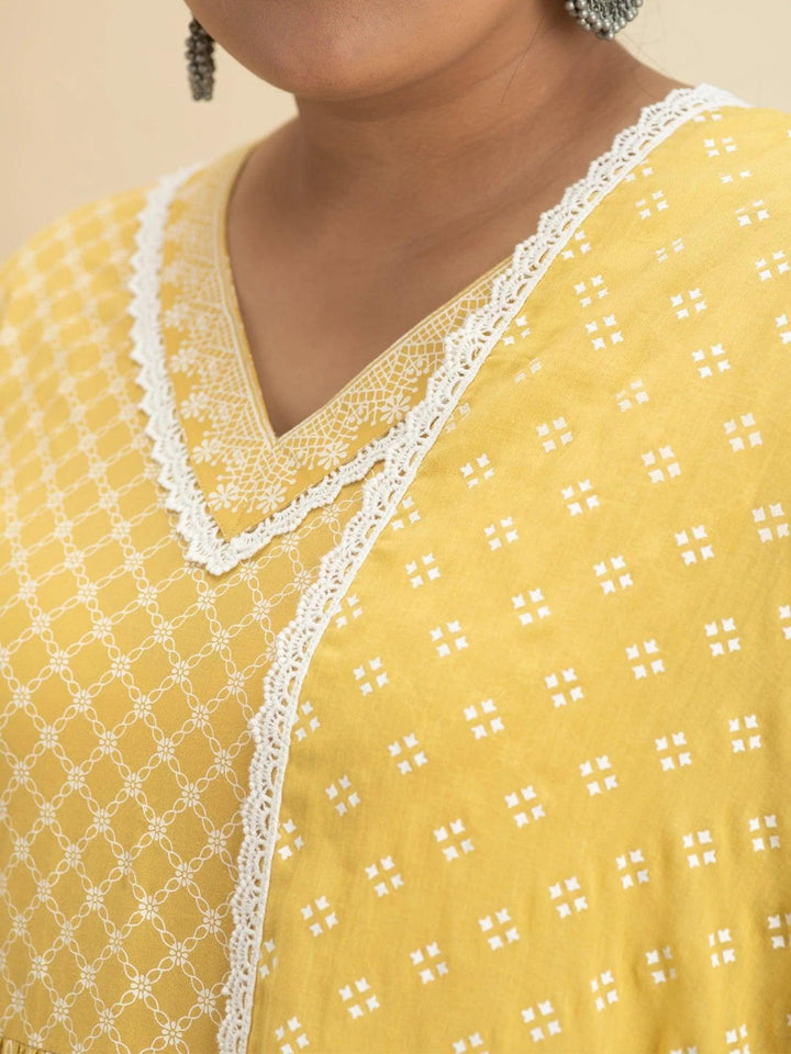 Plus Size Yellow Printed Cotton Suit Set - ShopLibas