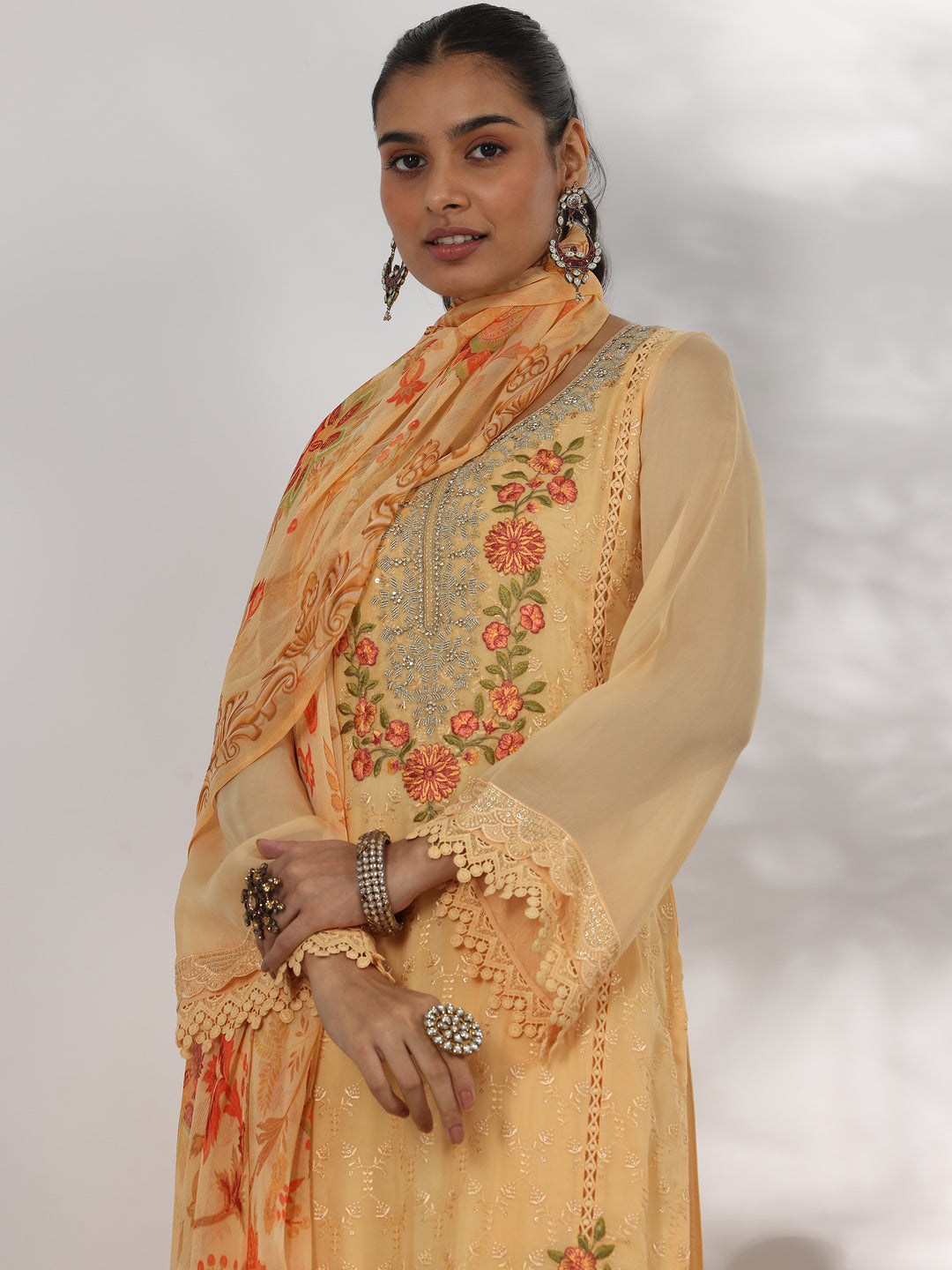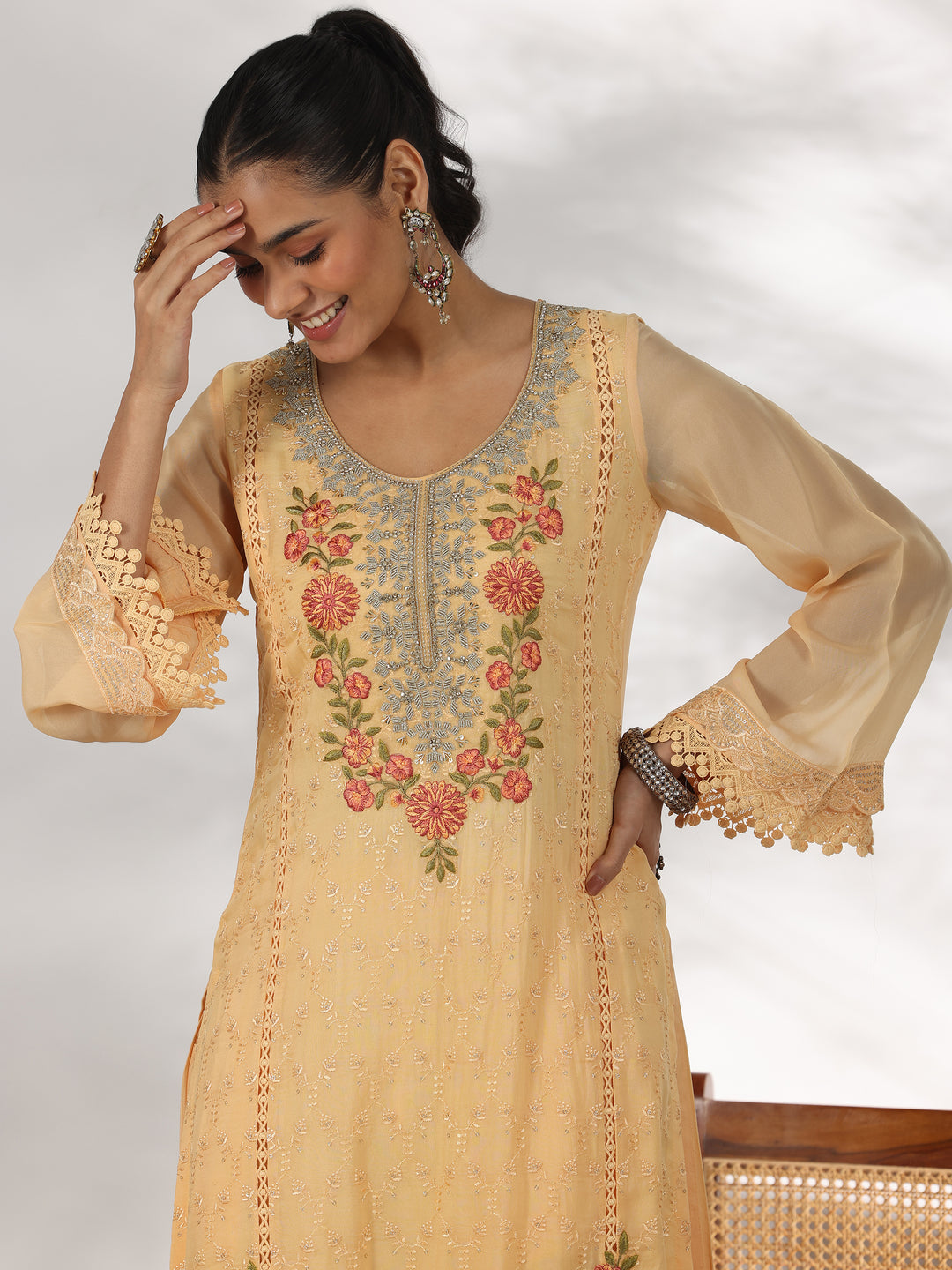 Yellow Embroidered Organza Straight Suit With Dupatta
