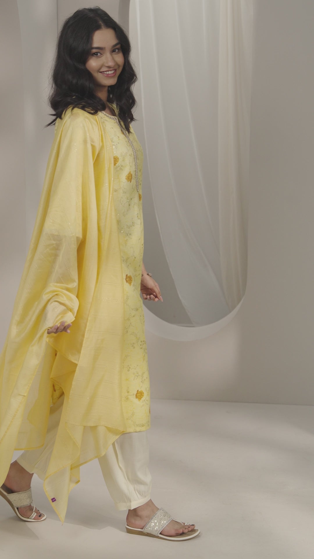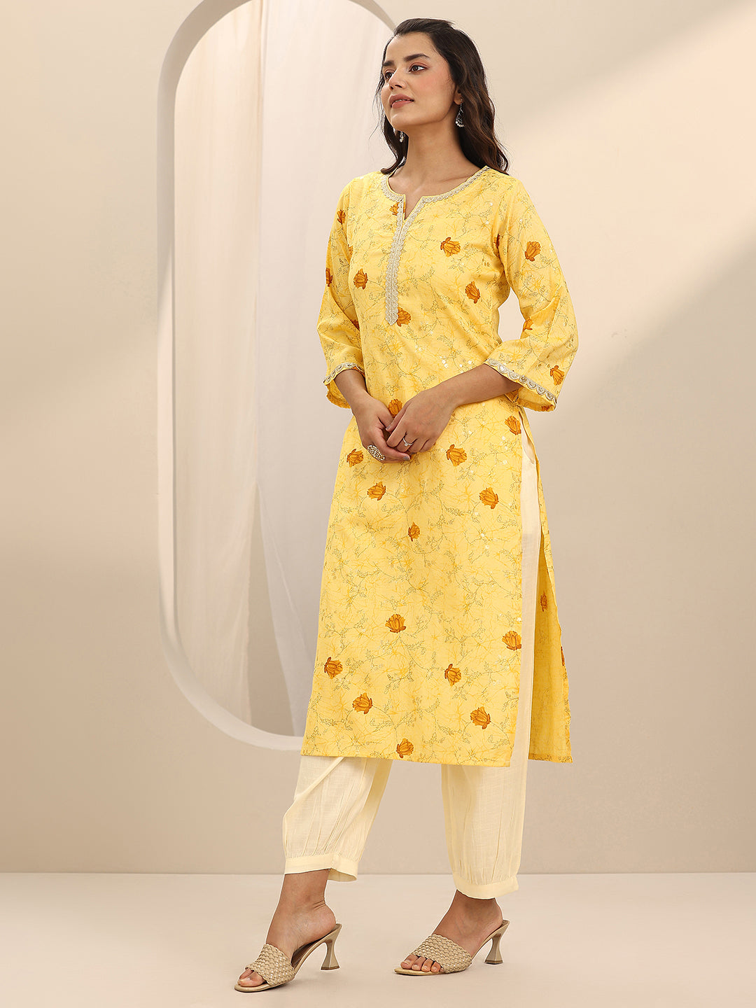 Pair this floral kurta set with delicate gold jewellery, a compact clutch, and comfortable slip-on sandals for an elegant everyday look.