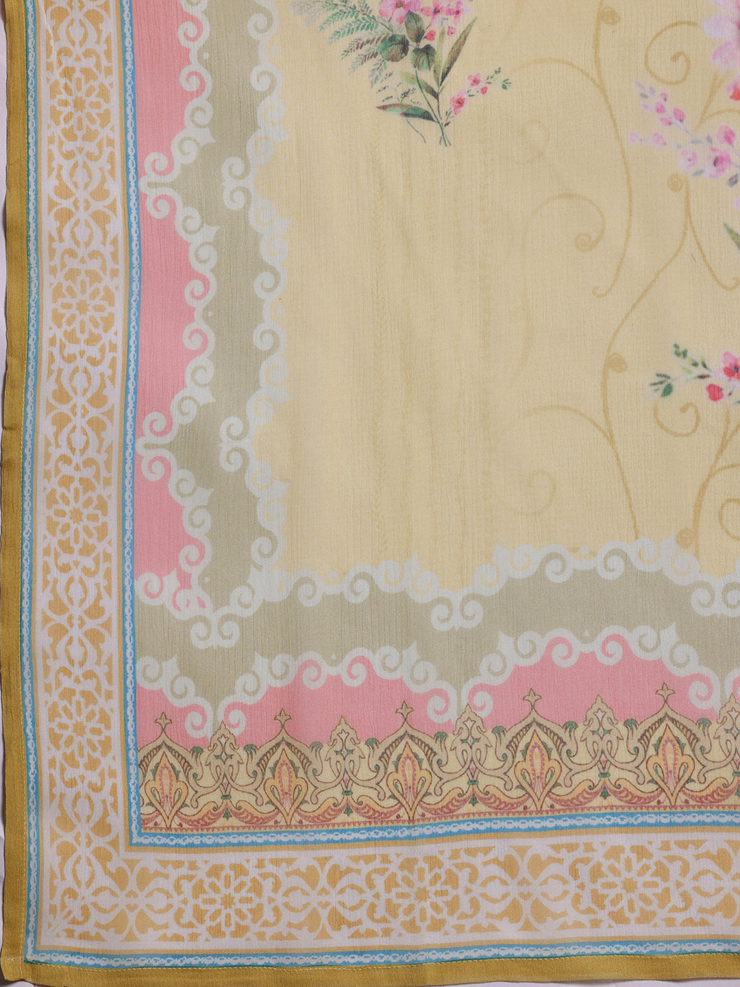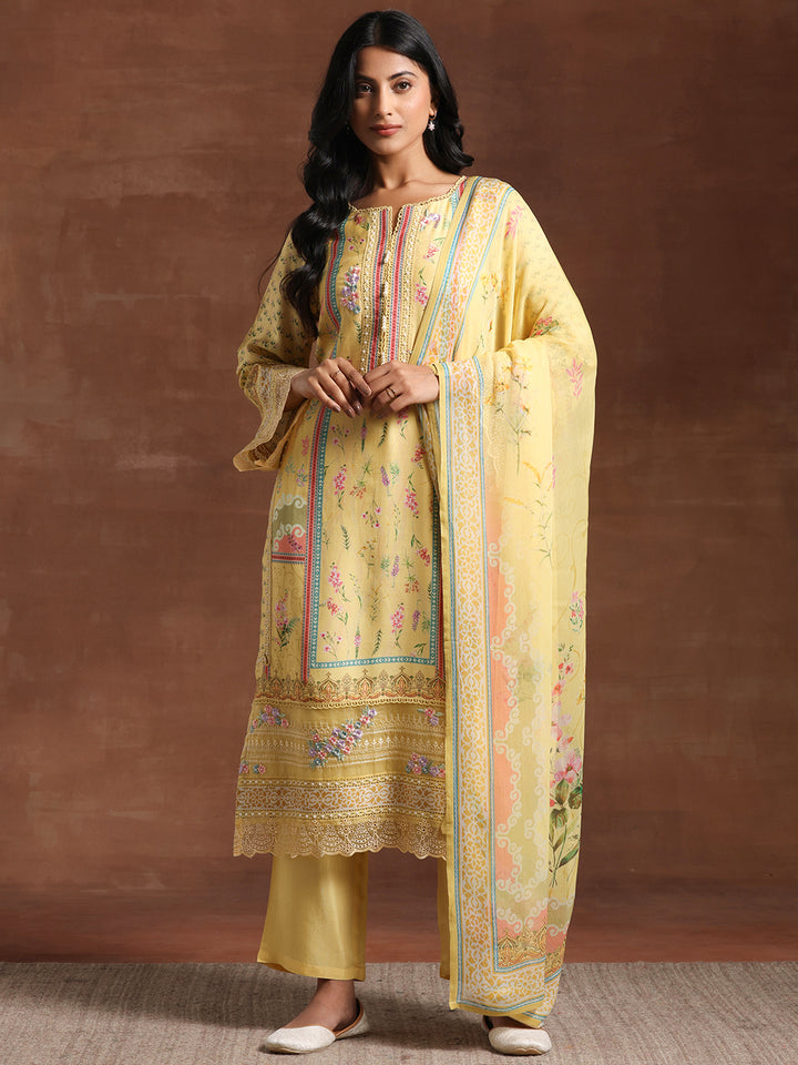Yellow Printed Silk Blend Straight Suit With Dupatta