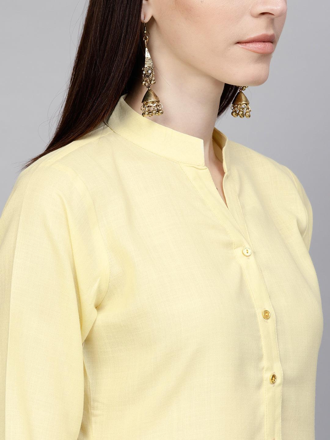 Yellow Solid Cotton Kurta