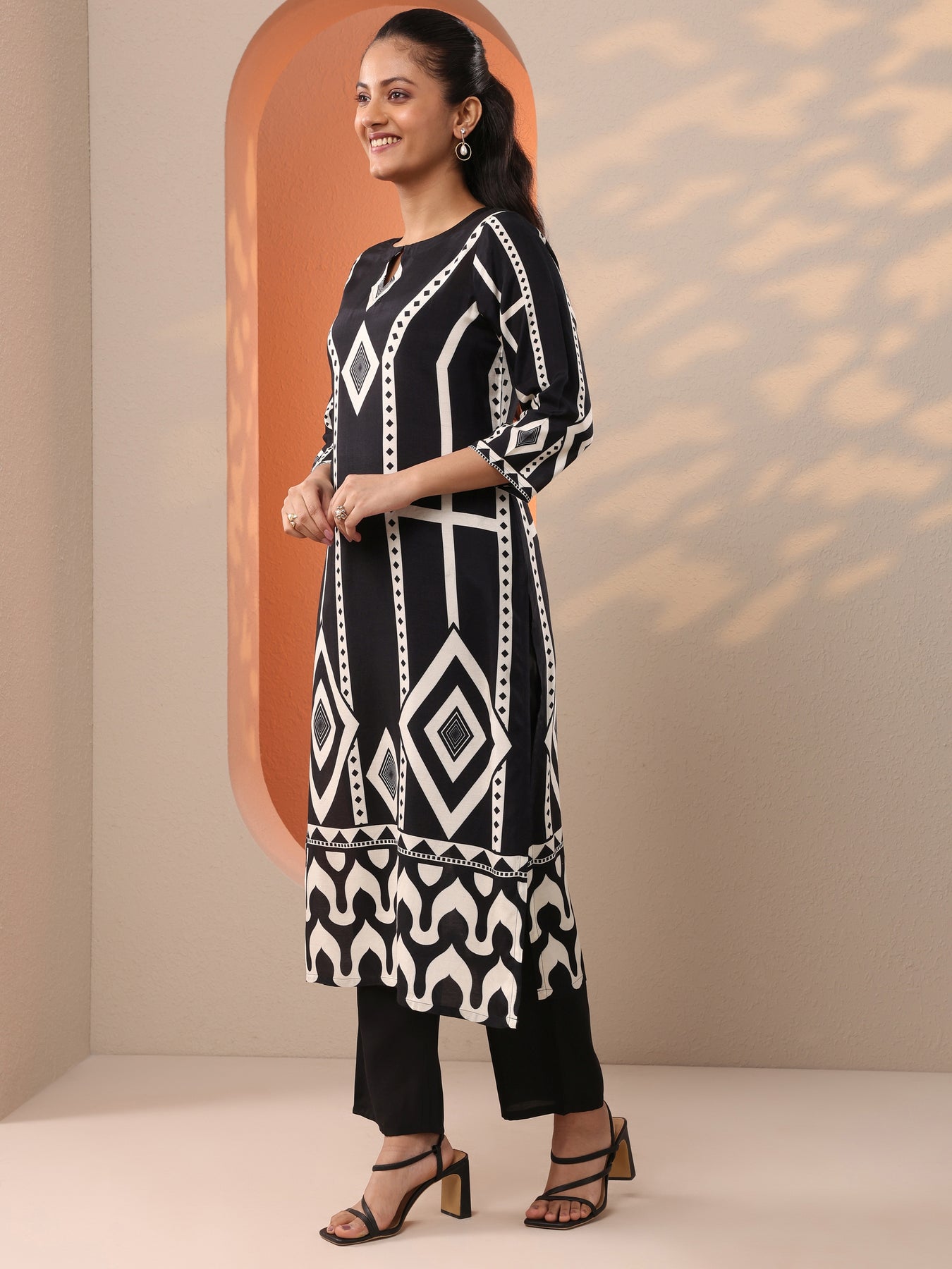 Black Printed Silk Blend Straight Suit Set With Dupatta