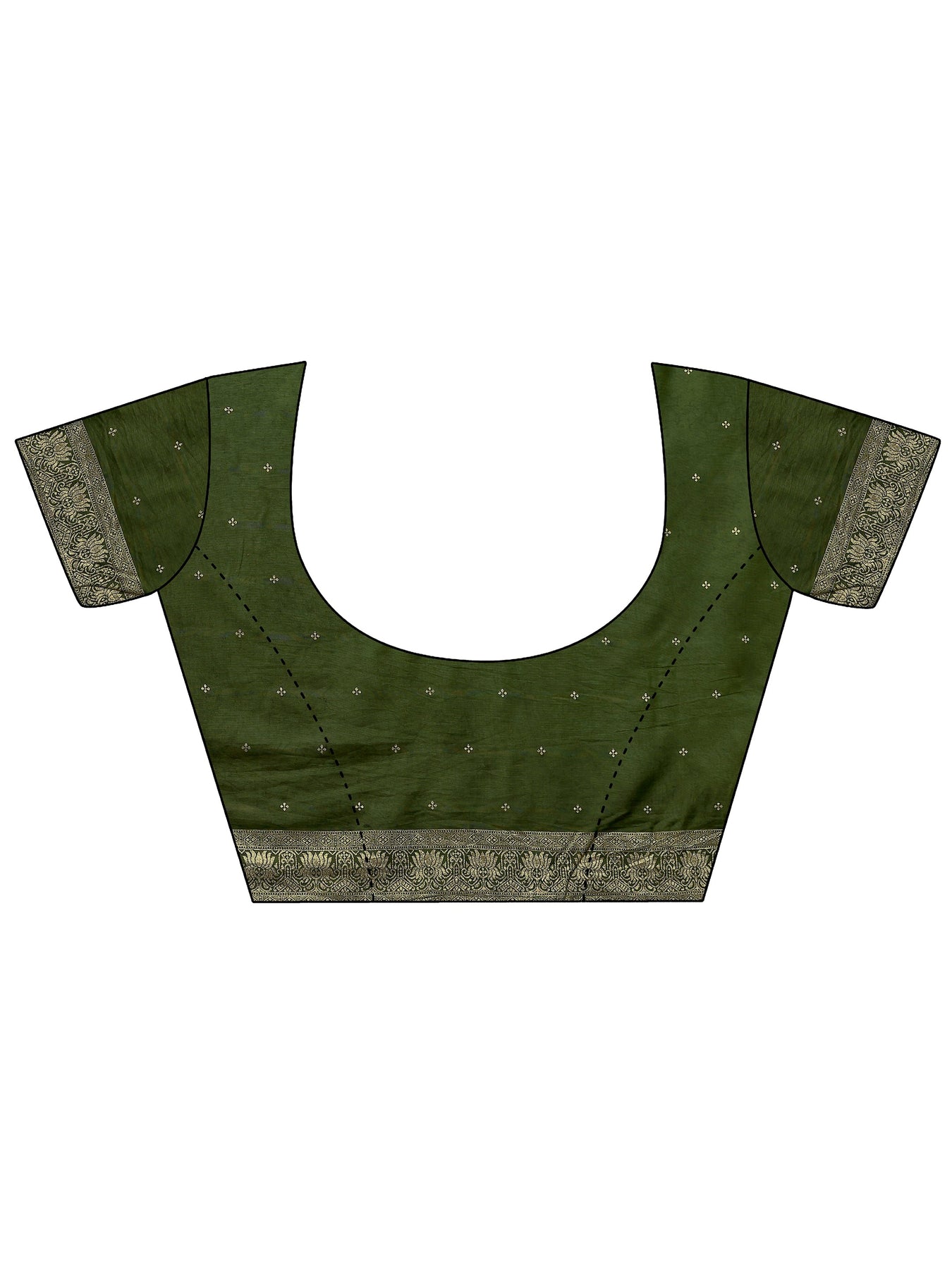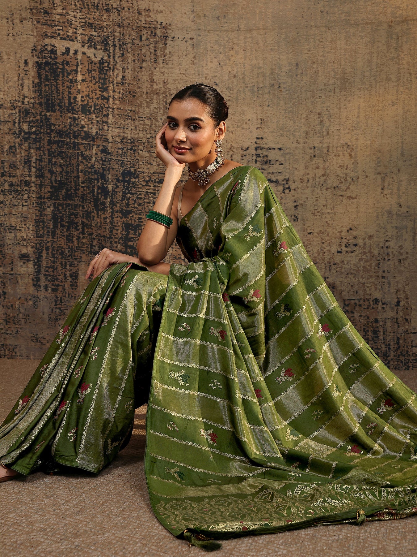 Olive Woven Design Silk Blend Saree With Unstitched Blouse Piece