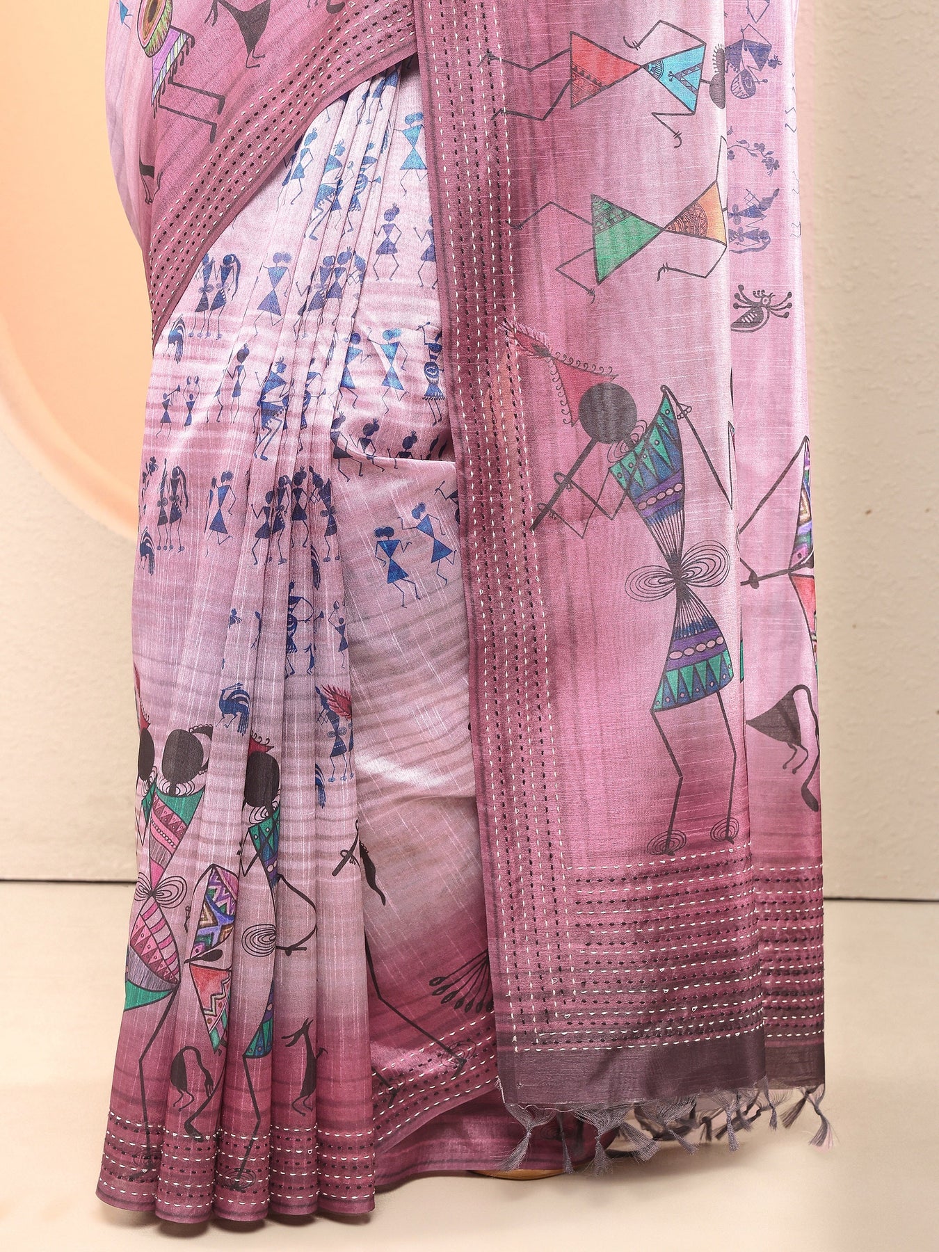 Purple Tribal Printed Sarees With Unstitched Blouse Piece