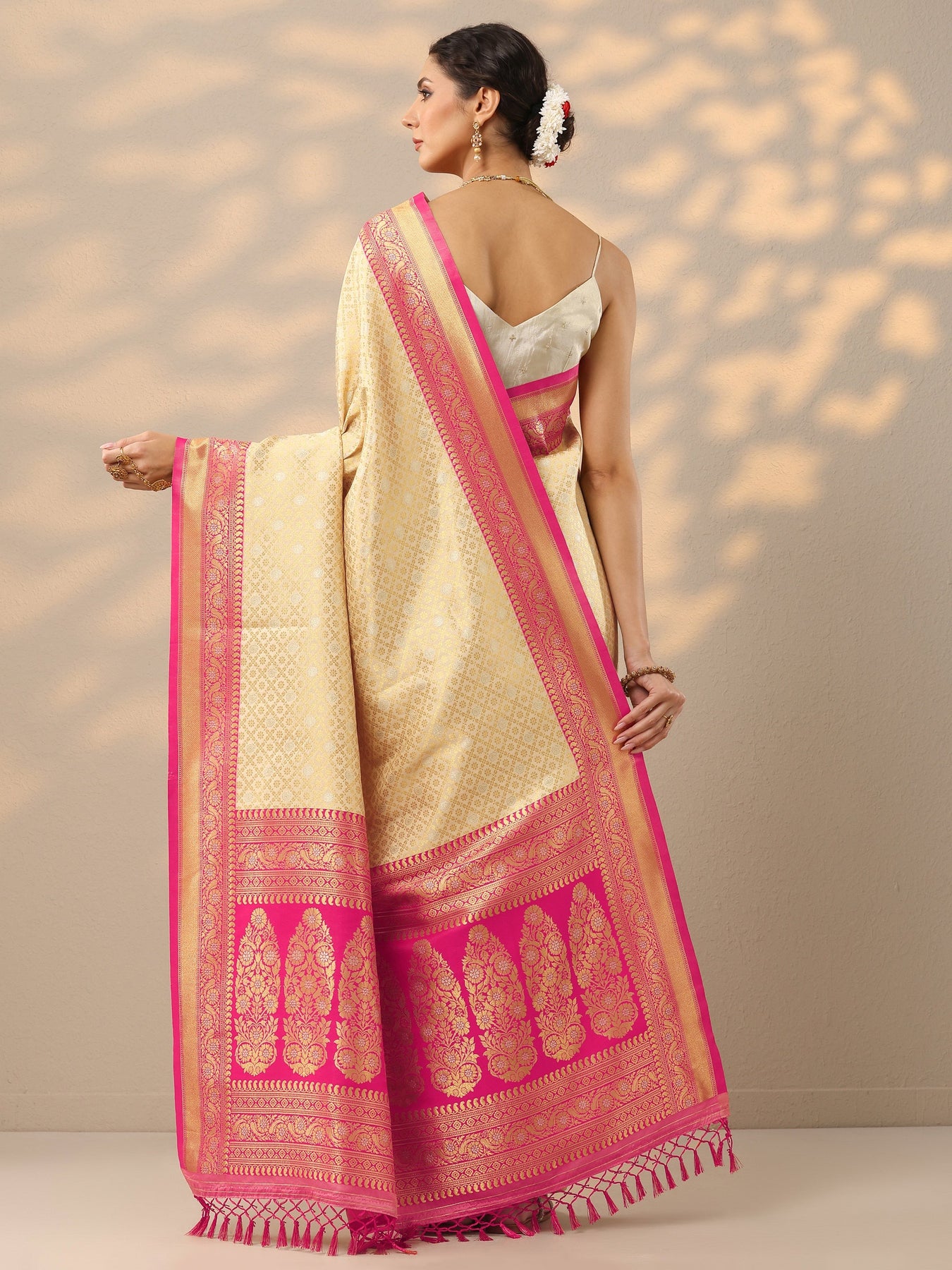 Beige Woven Design Banarasi Silk Blend Saree With Unstitched Blouse Pi