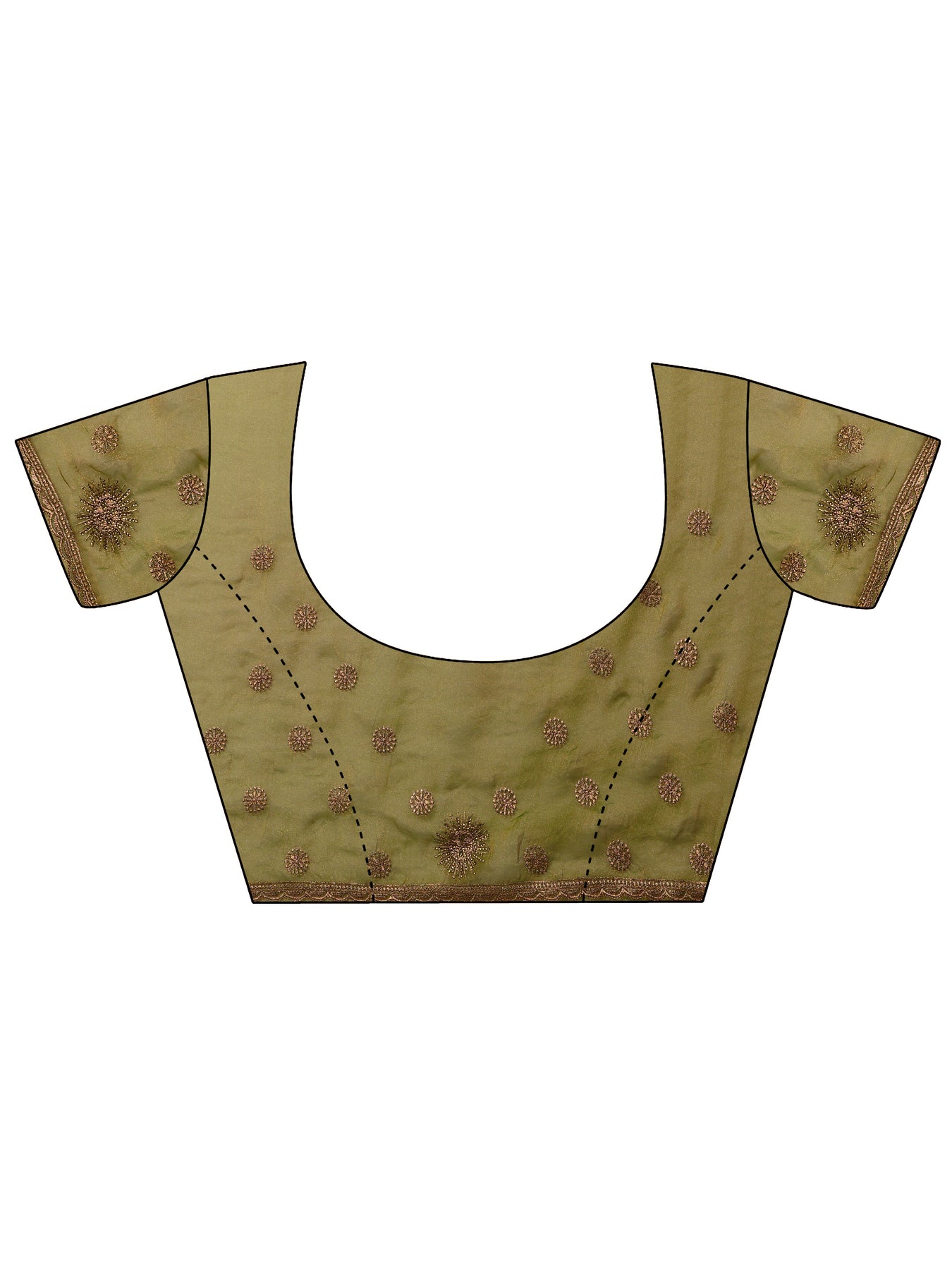 Our Olive Printed Silk Blend Saree Features Captivating Embellishments. Complemented With An Unstitched Blouse Piece. This Charming Saree Is Perfect For Festive Occasions