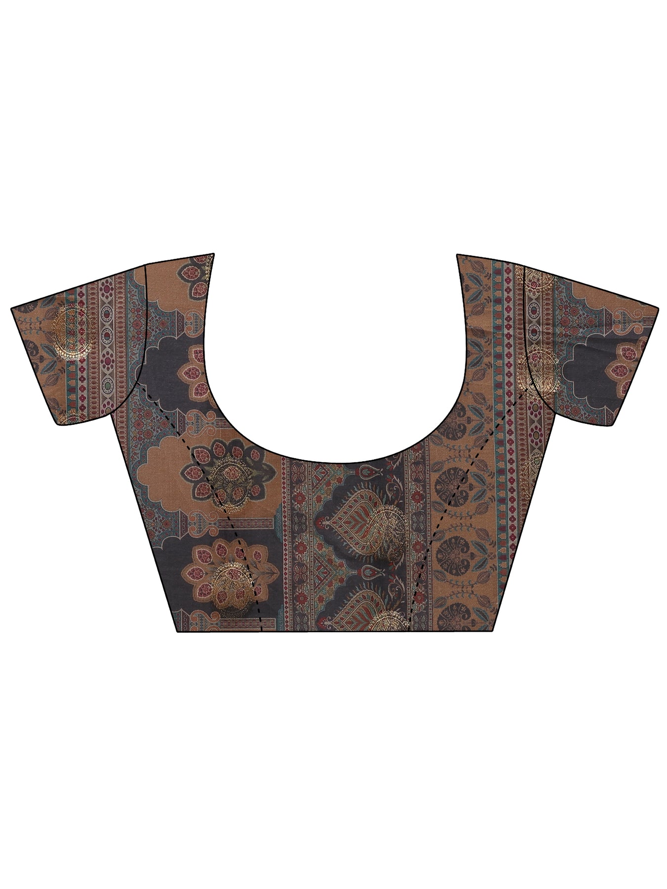 Mustard Printed Silk Blend Saree With Unstitched Blouse Piece