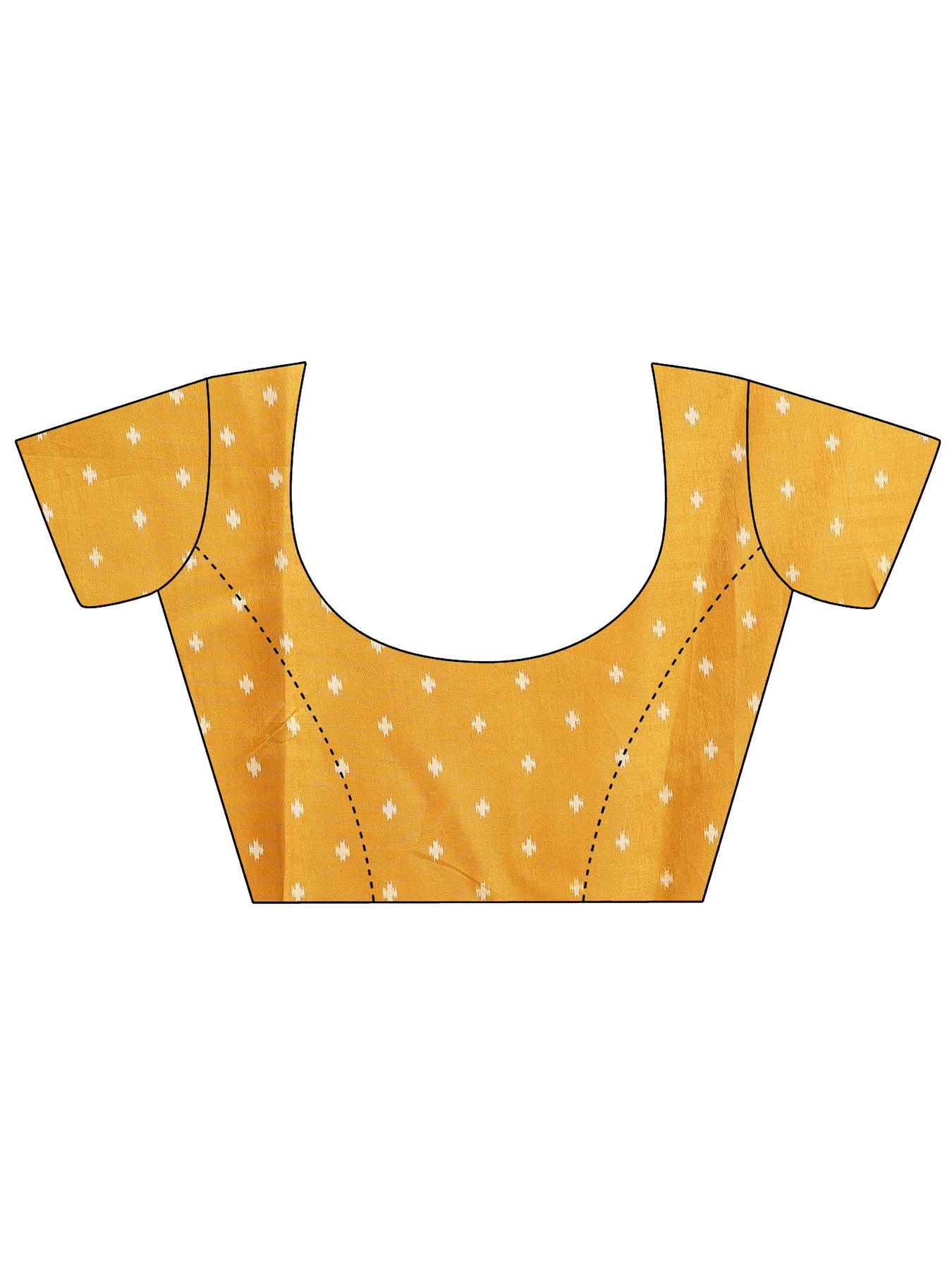 Mustard Printed Silk Blend Saree With Unstitched Blouse Piece