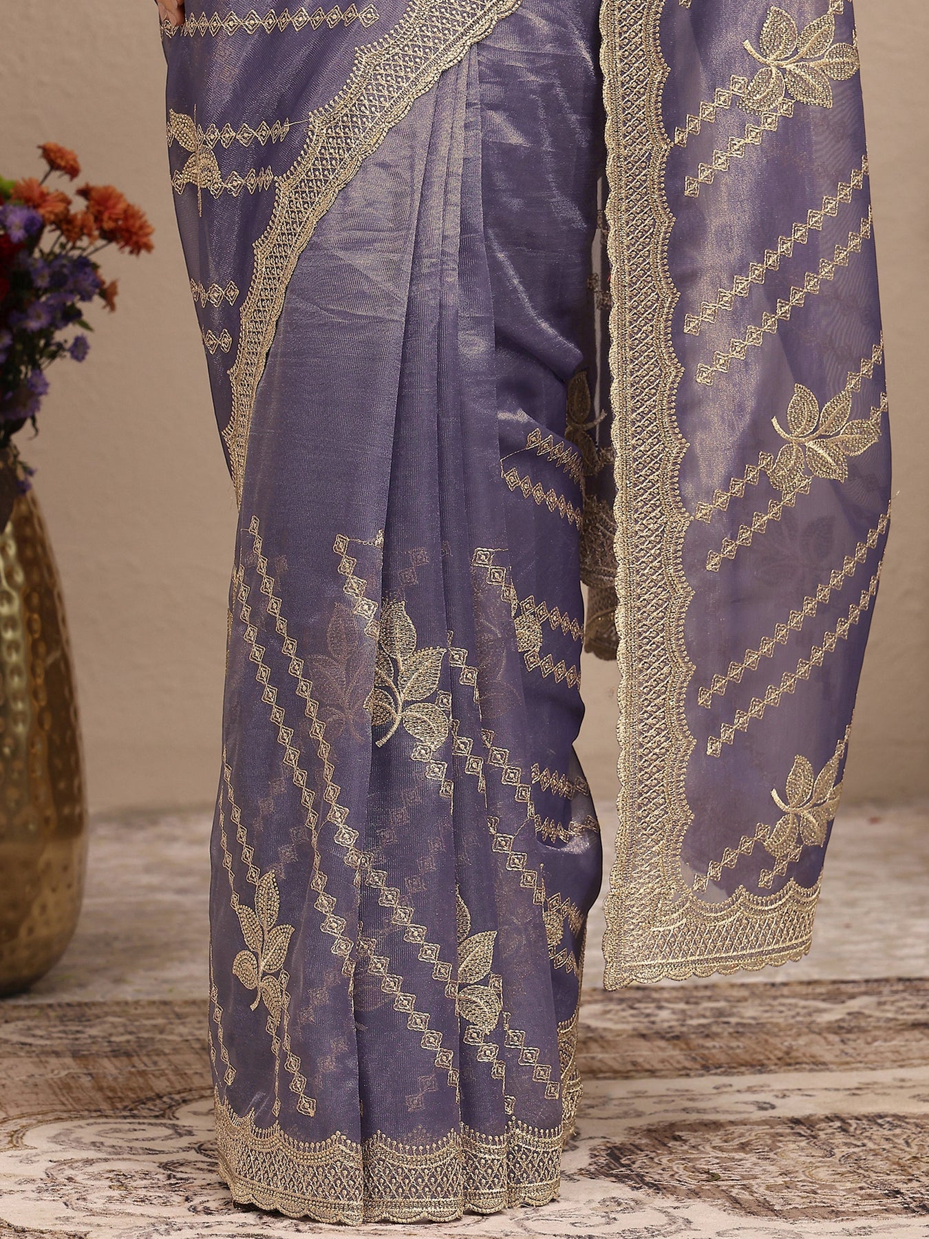 Lavender Embroidered Organza Saree With Unstitched Blouse Piece