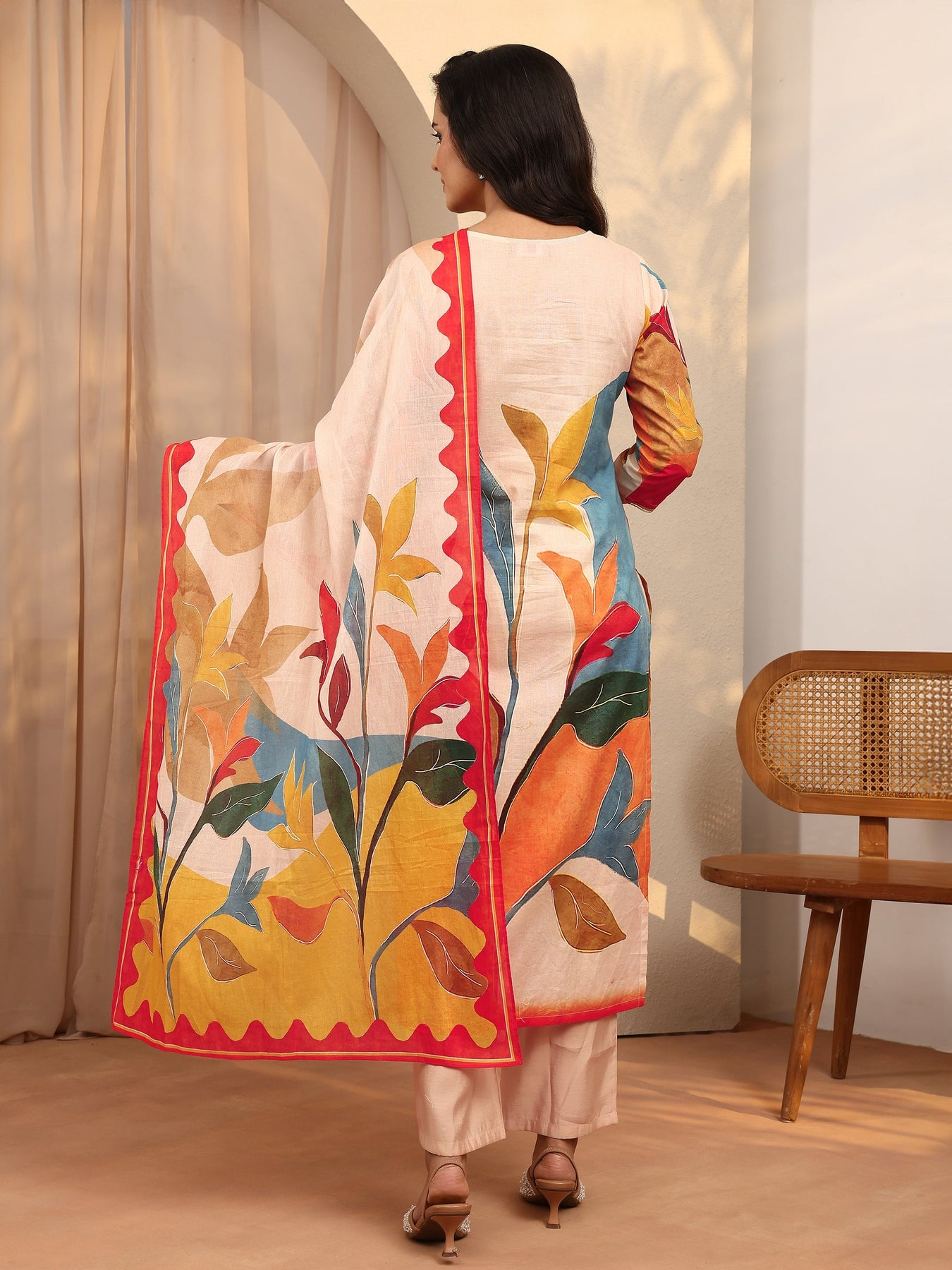 Multi Printed Cotton Straight Suit Set With Dupatta