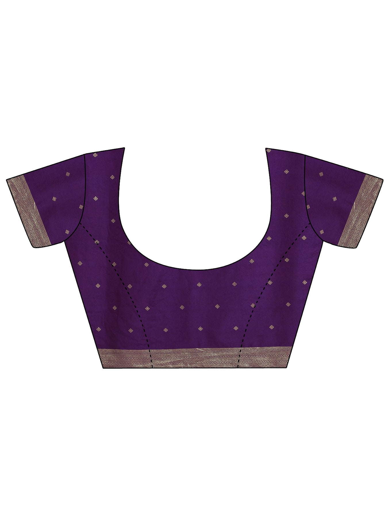 Our purple printed silk blend saree features captivating embellishments. Complemented with a blouse piece. This charming saree is perfect for festive occasions.