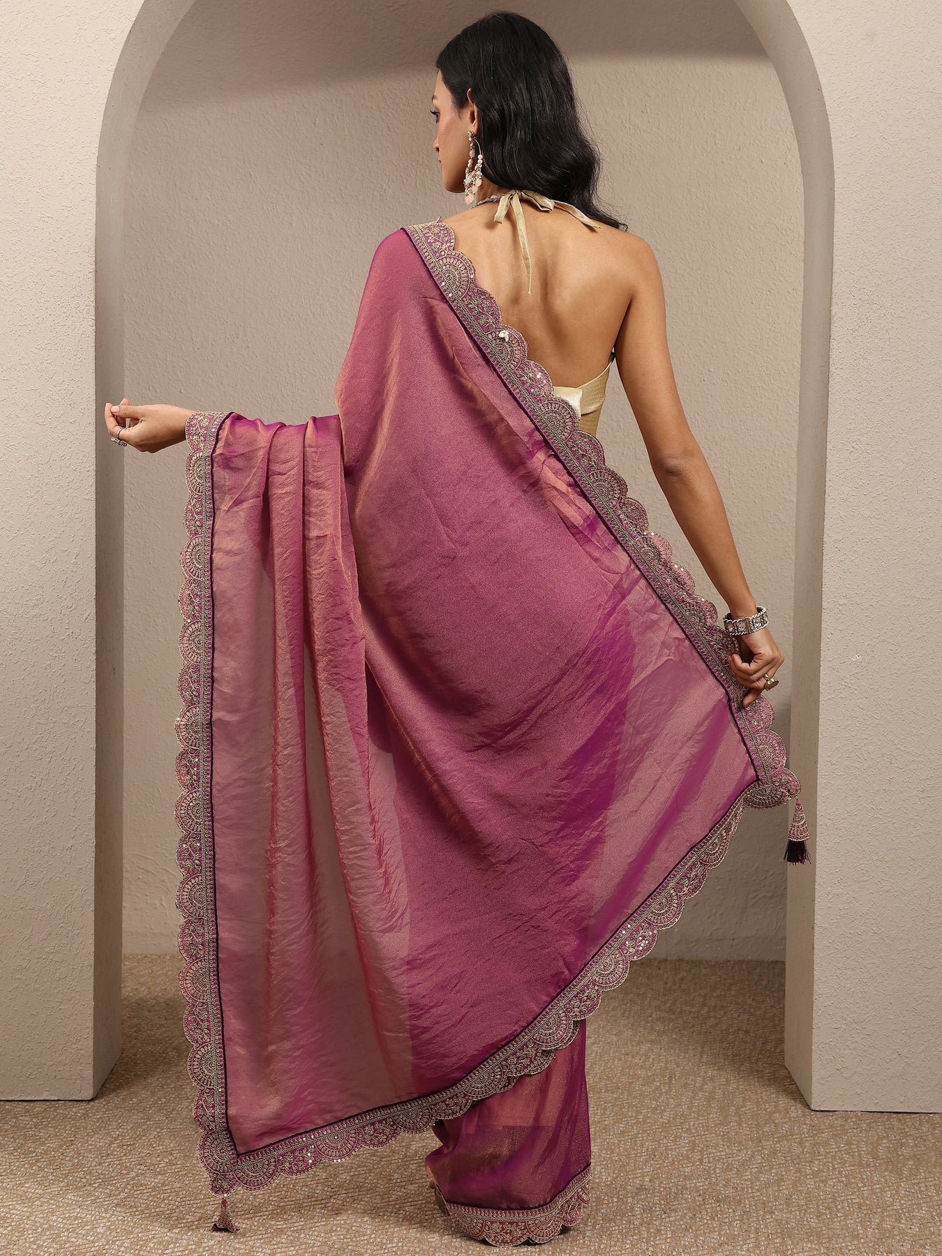 Mauve Solid Organza Saree With Unstitched Blouse Piece