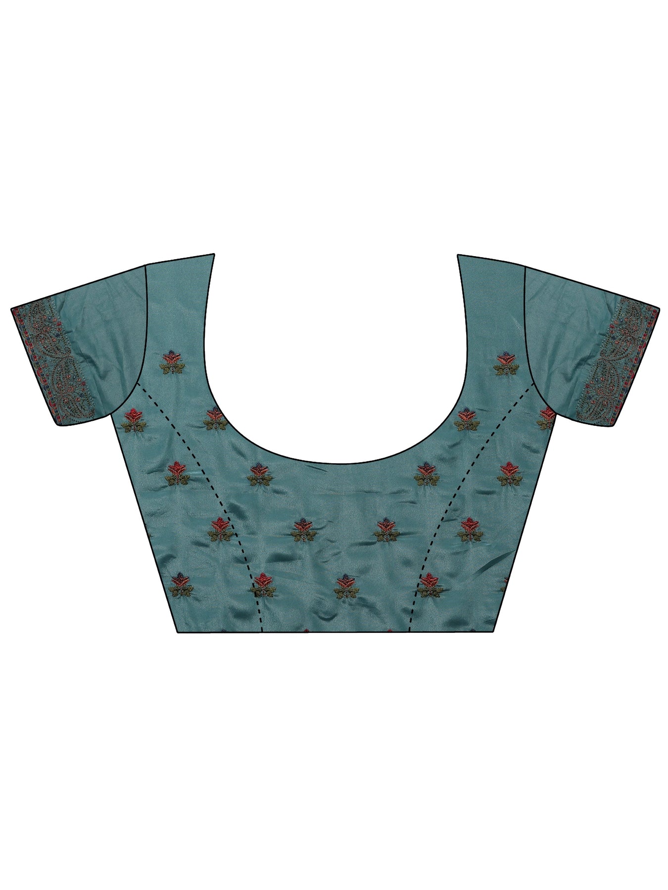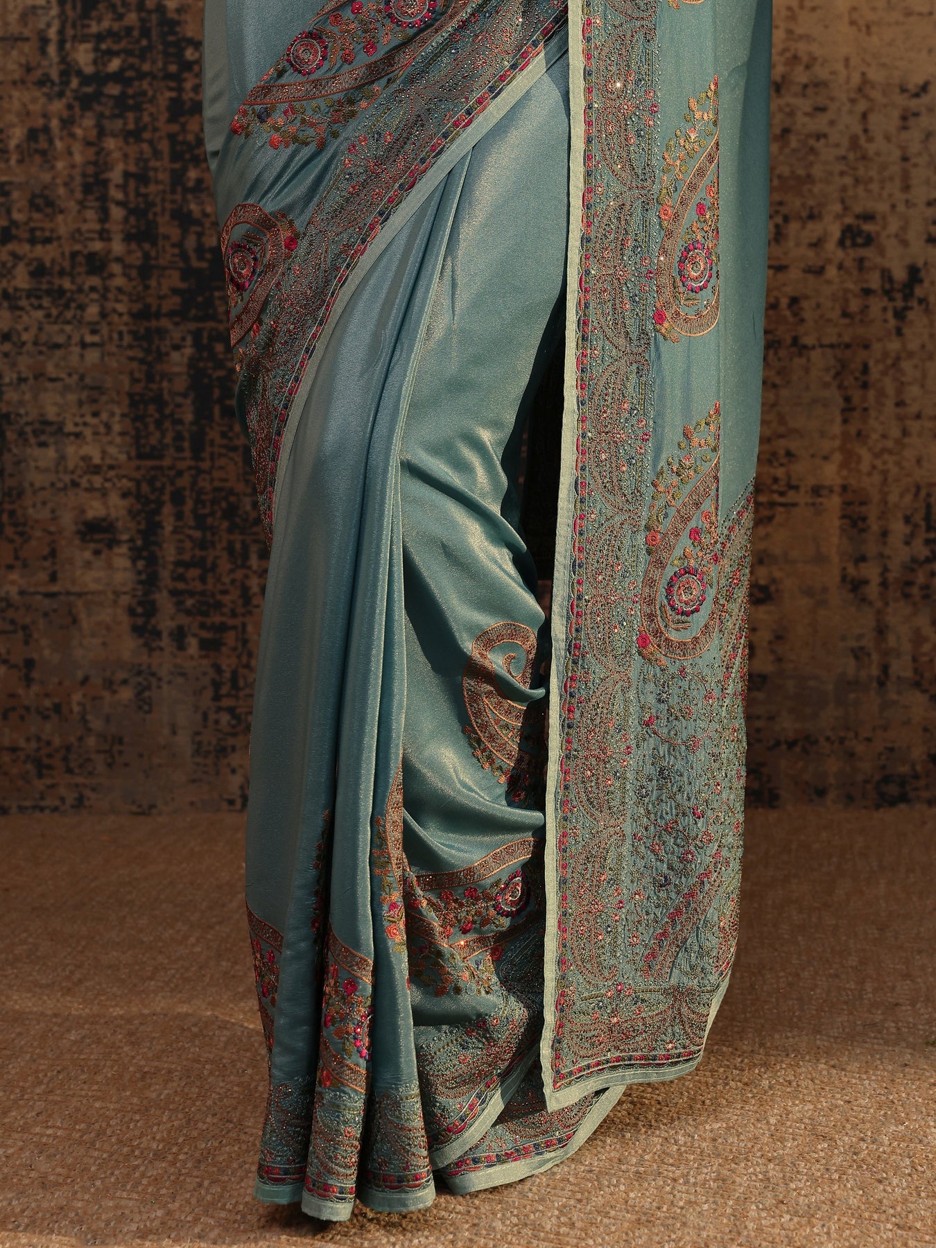 Blue Floral Embroidered Satin Saree With Unstitched Blouse Piece