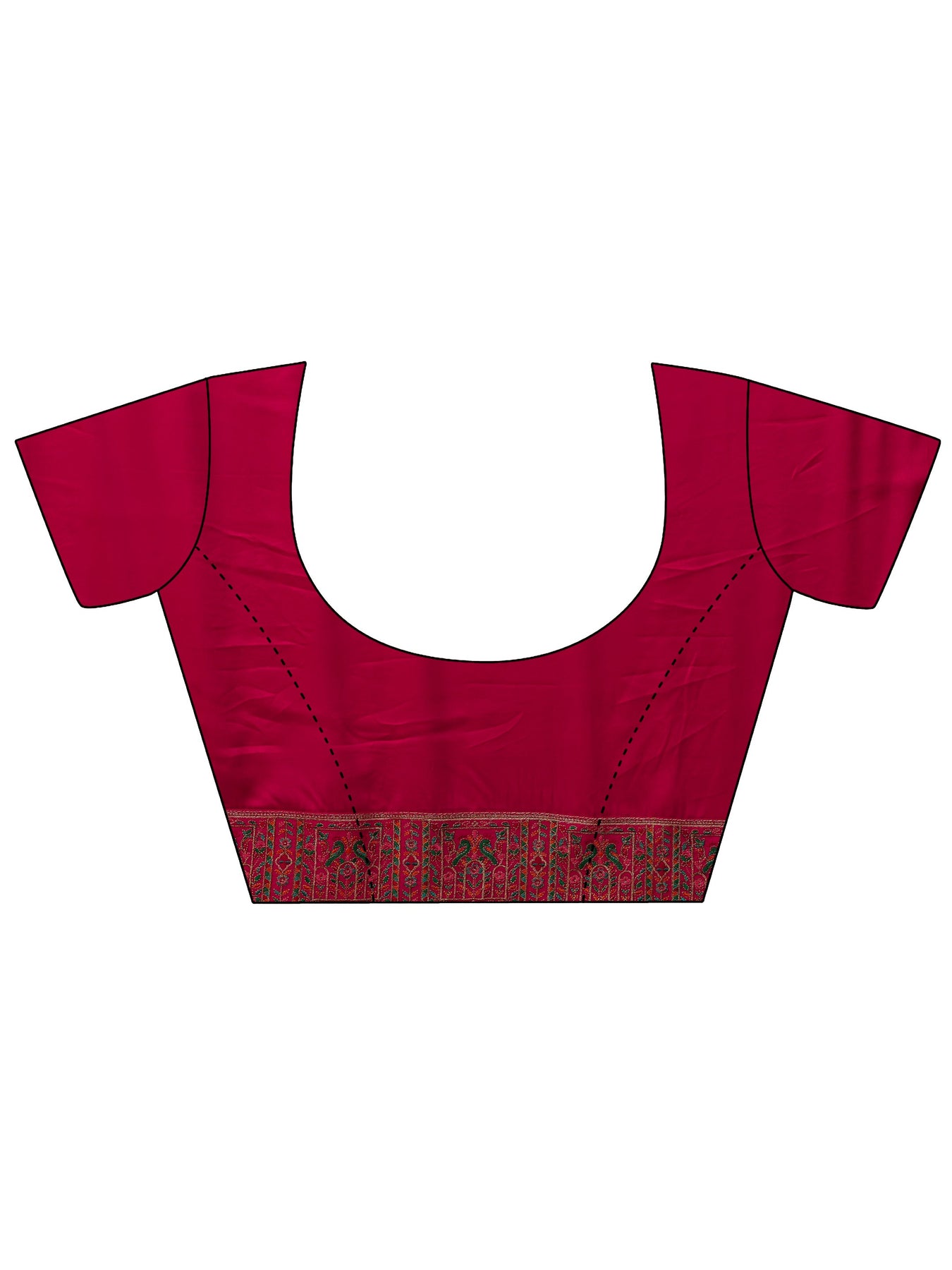 Cream Ethnic Motifs Embroidered Silk Blend Saree With Unstitched Blouse Piece