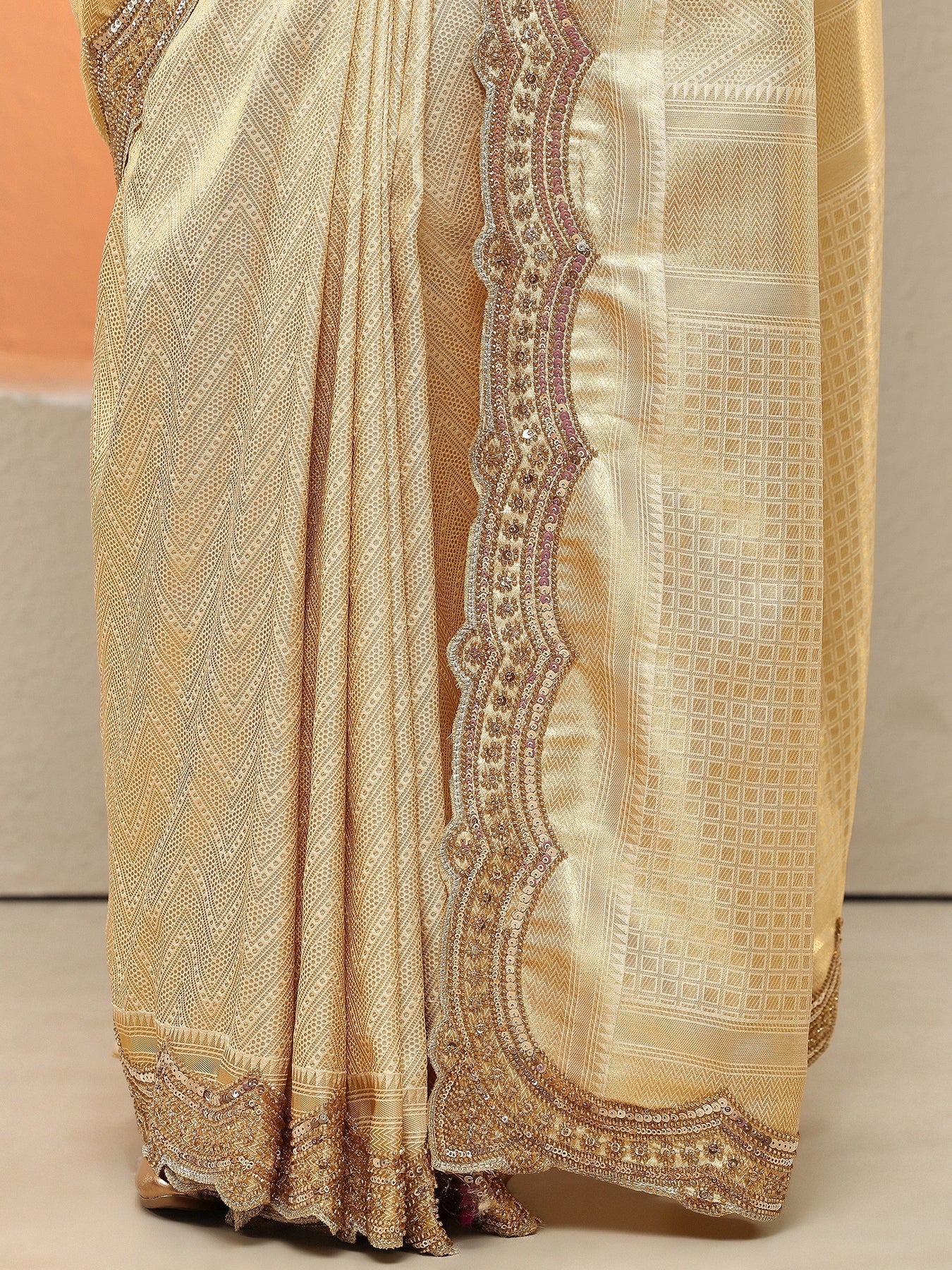 Gold Woven Design Silk Blend Sarees With Unstitched Blouse Piece