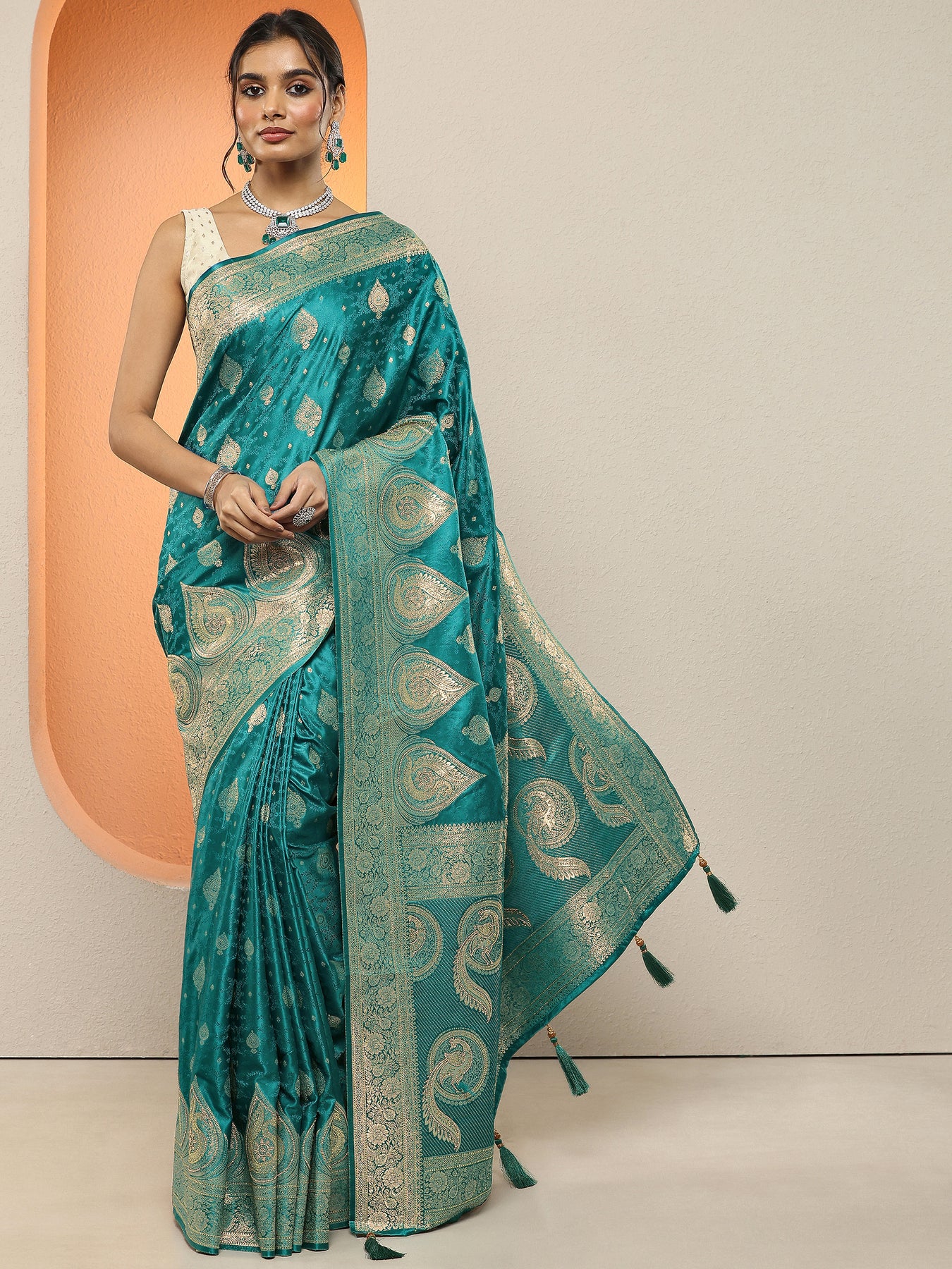 Green Woven Design Silk Blend Sarees With Unstitched Blouse Piece