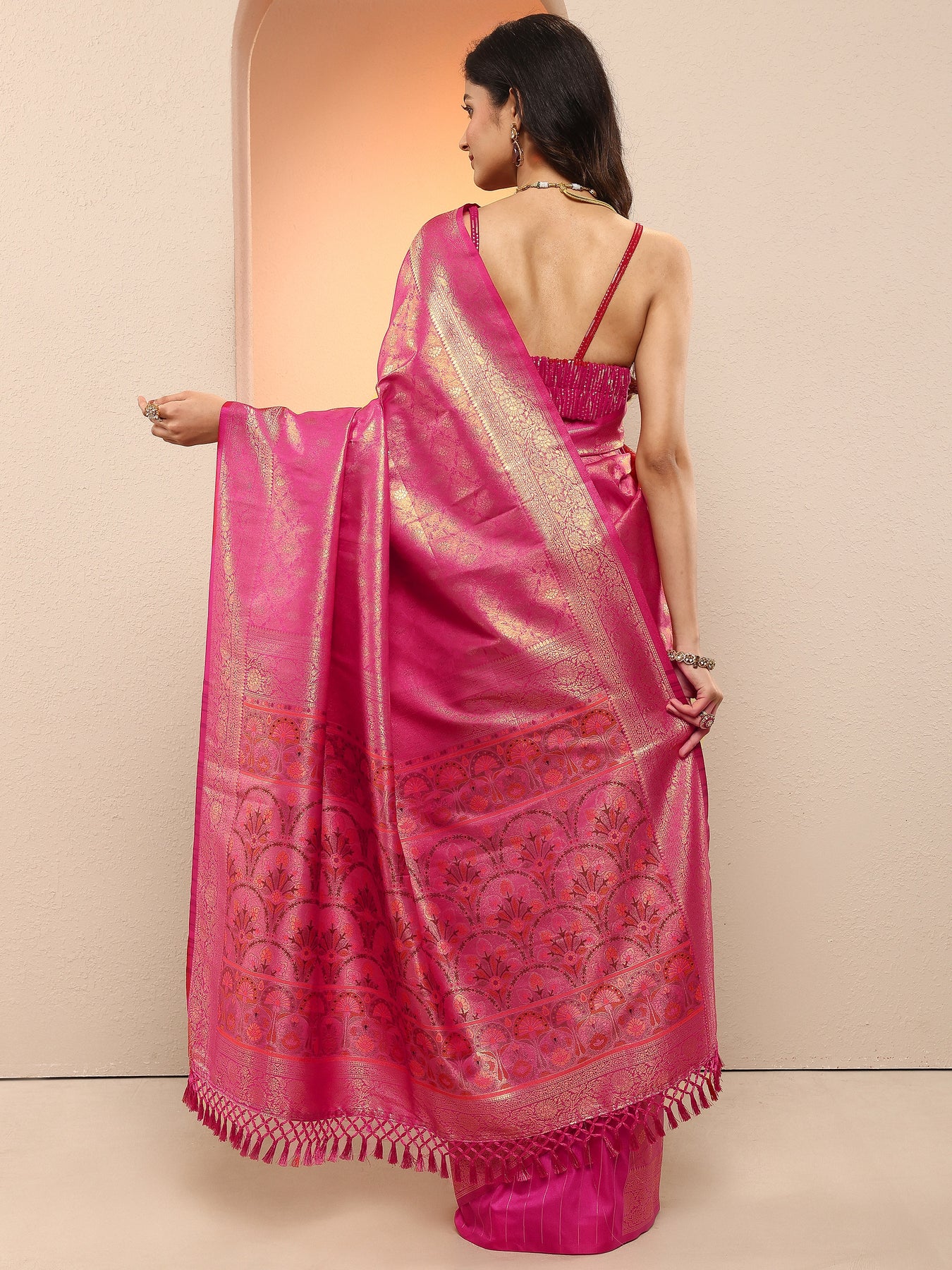 Pink Woven Design Silk Blend Sarees With Unstitched Blouse Piece