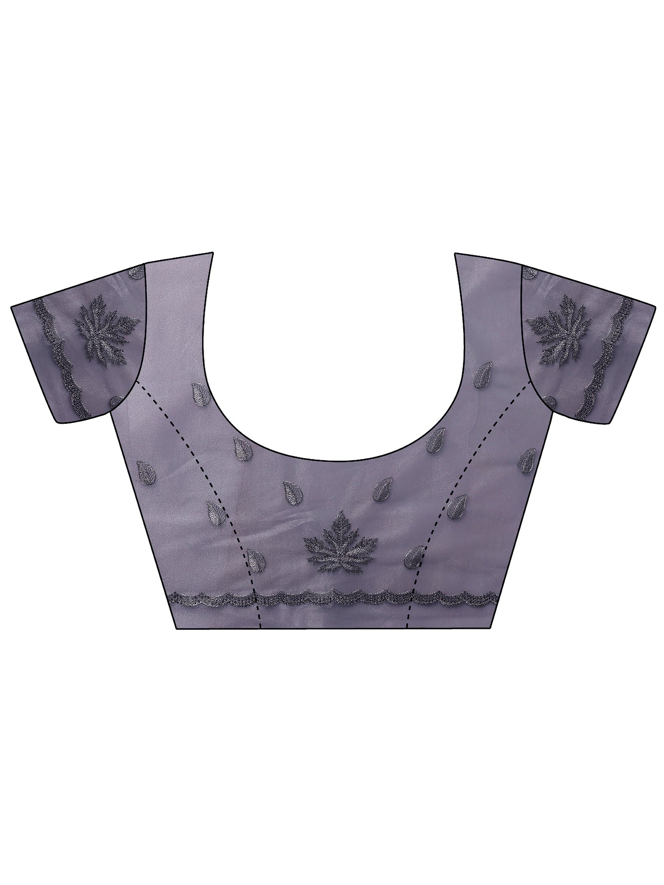 Our Blue Embroidered Nylon Saree. Complemented With An Unstitched Blouse Piece. This Charming Saree Is Perfect For Festive Occasions.