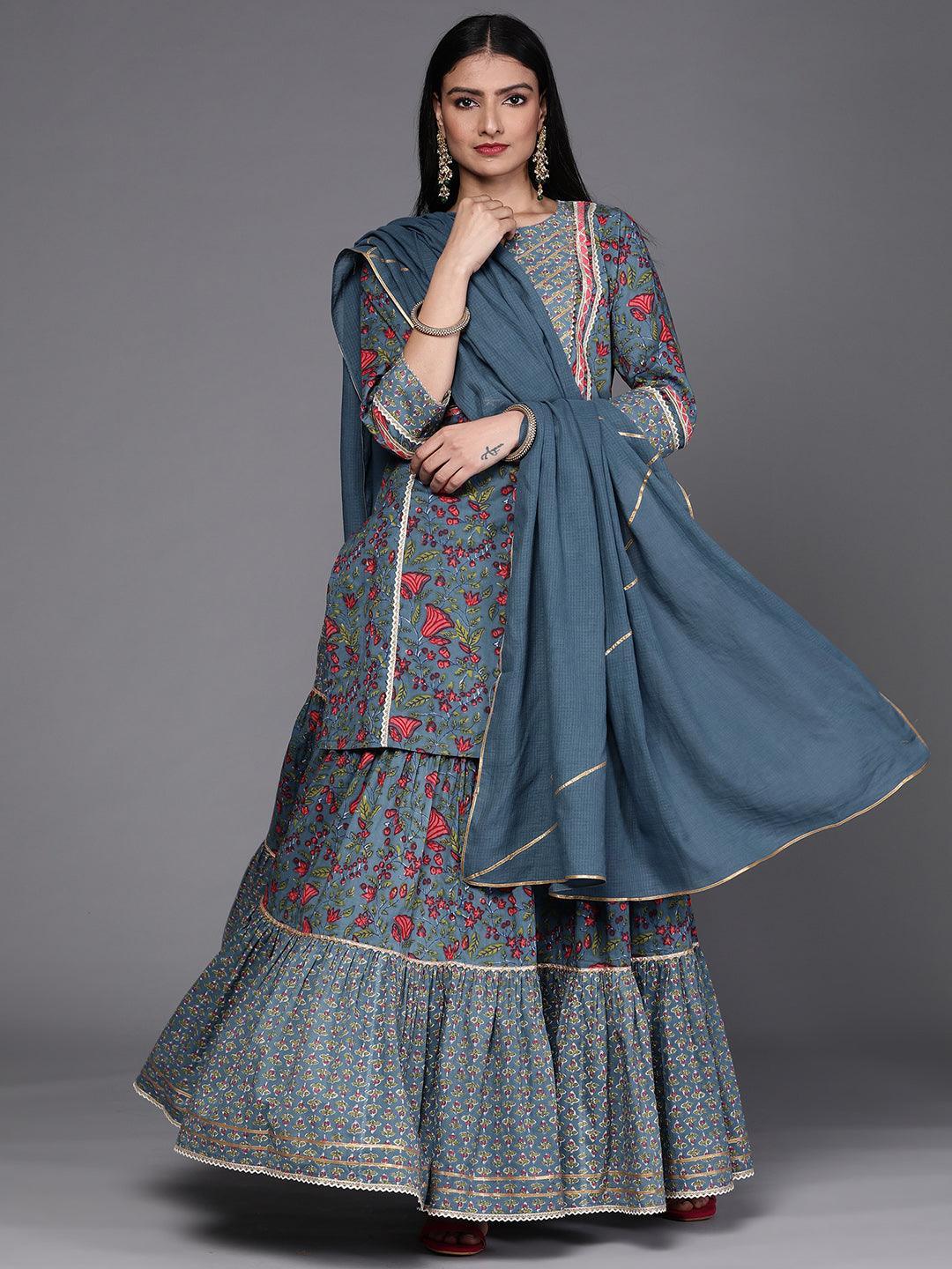 Buy Blue Printed Cotton Suit Set - 33259O-XS | Libas Ethnic Wear Online