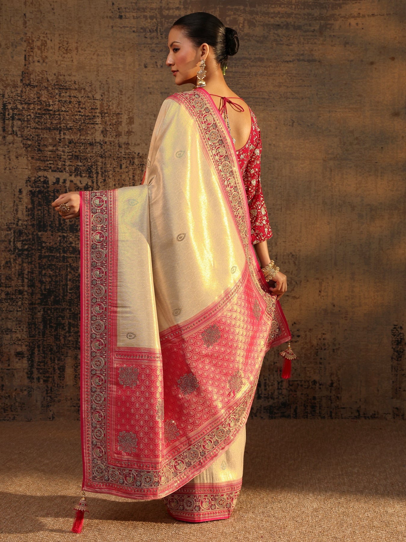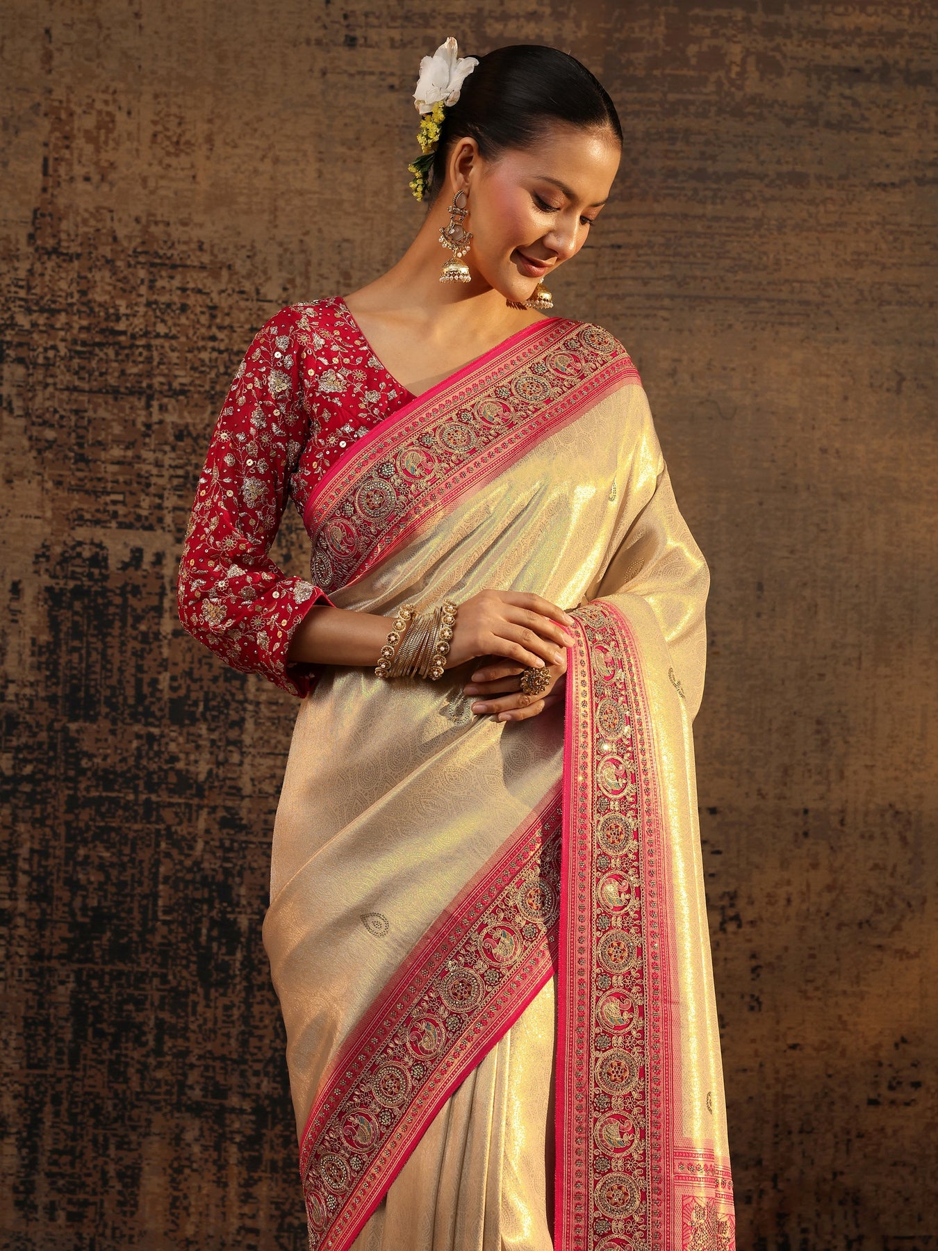 Libas Art Gold Ethnic Motifs Woven Design Silk Blend Saree With Unstitched Blouse Piece