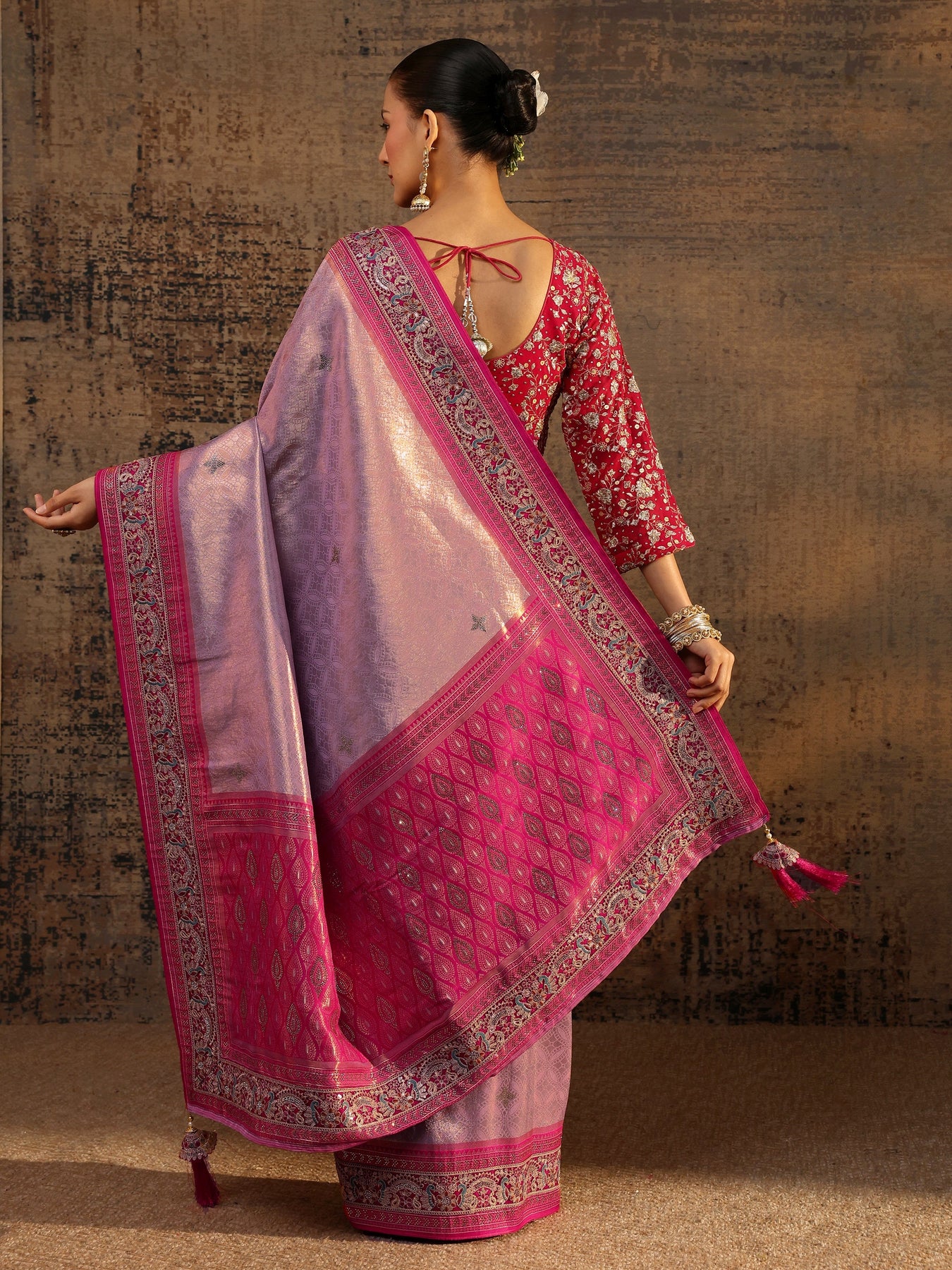 Libas Art Lavender Ethnic Motifs Woven Design Silk Blend Saree With Unstitched Blouse Piece