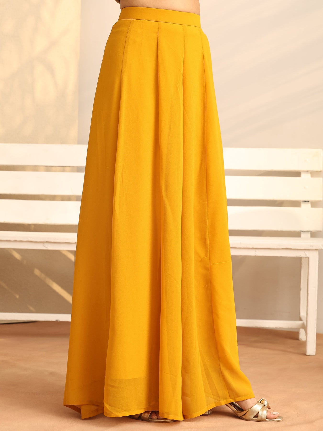 Mustard Chevron Embroidered Georgette Straight Suit Set With Dupatta