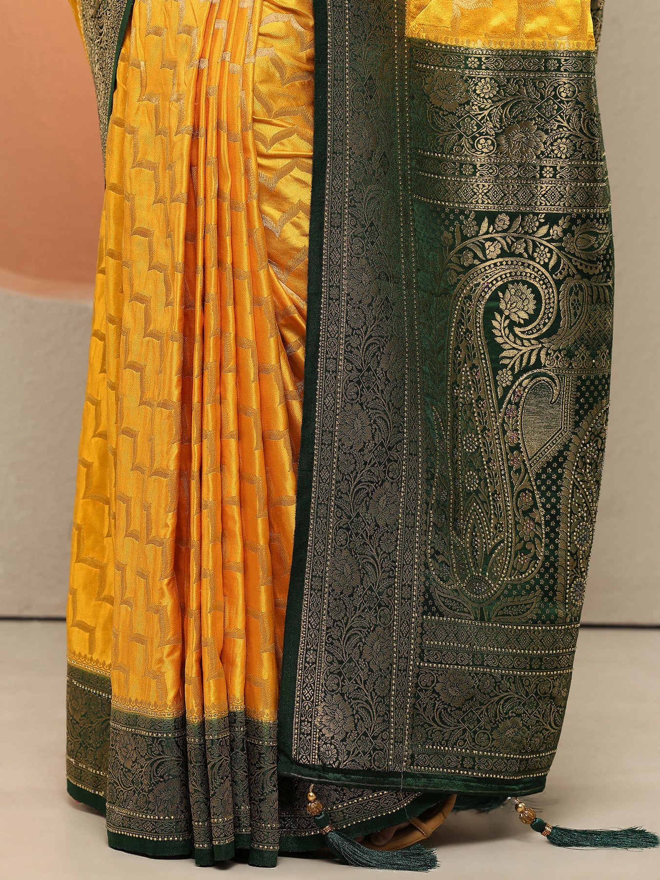 Mustard Leheriya Woven Design Sarees With Unstitched Blouse Piece