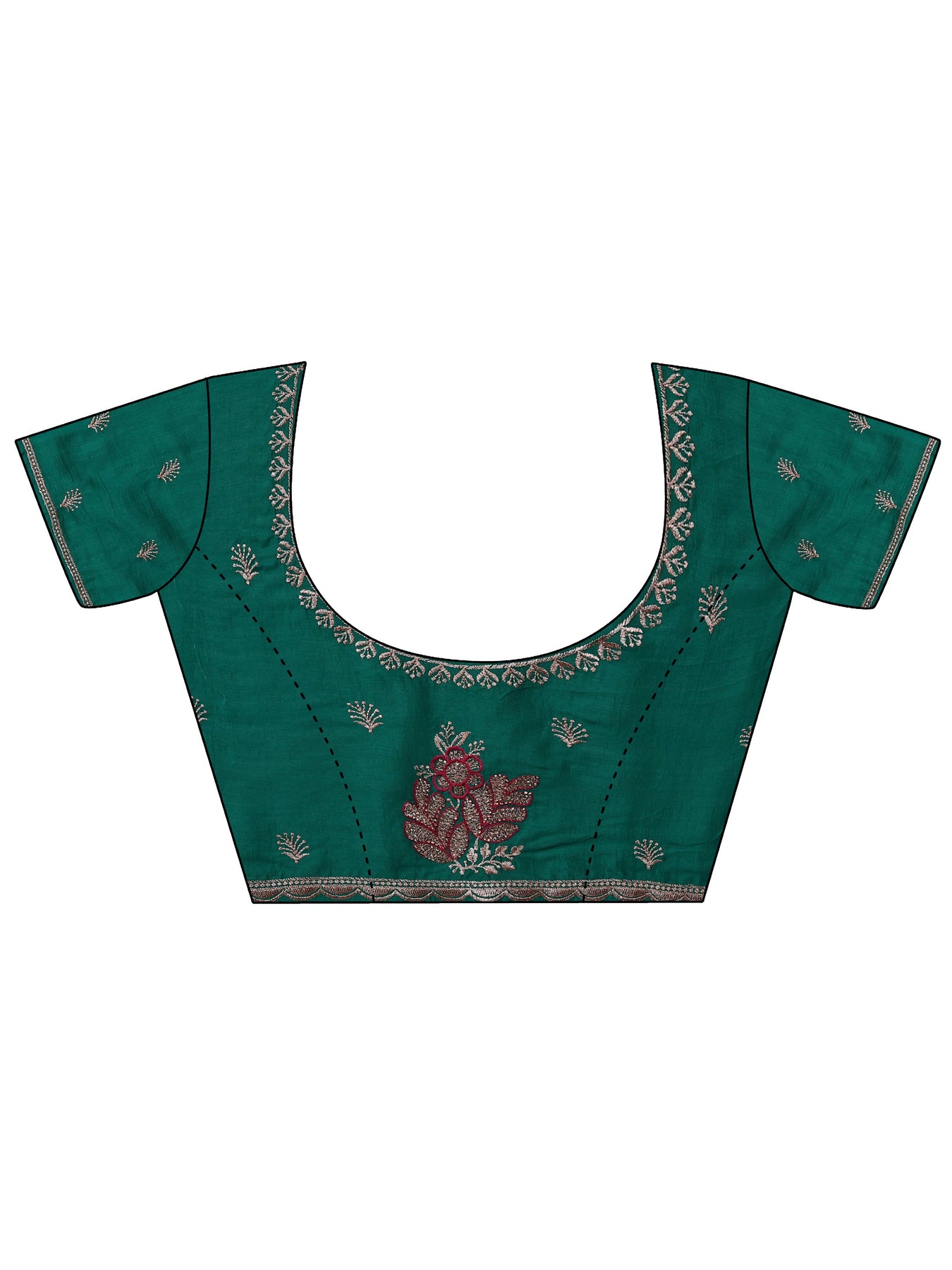 Pink Floral Embroidered Silk Blend Saree With Unstitched Blouse Piece