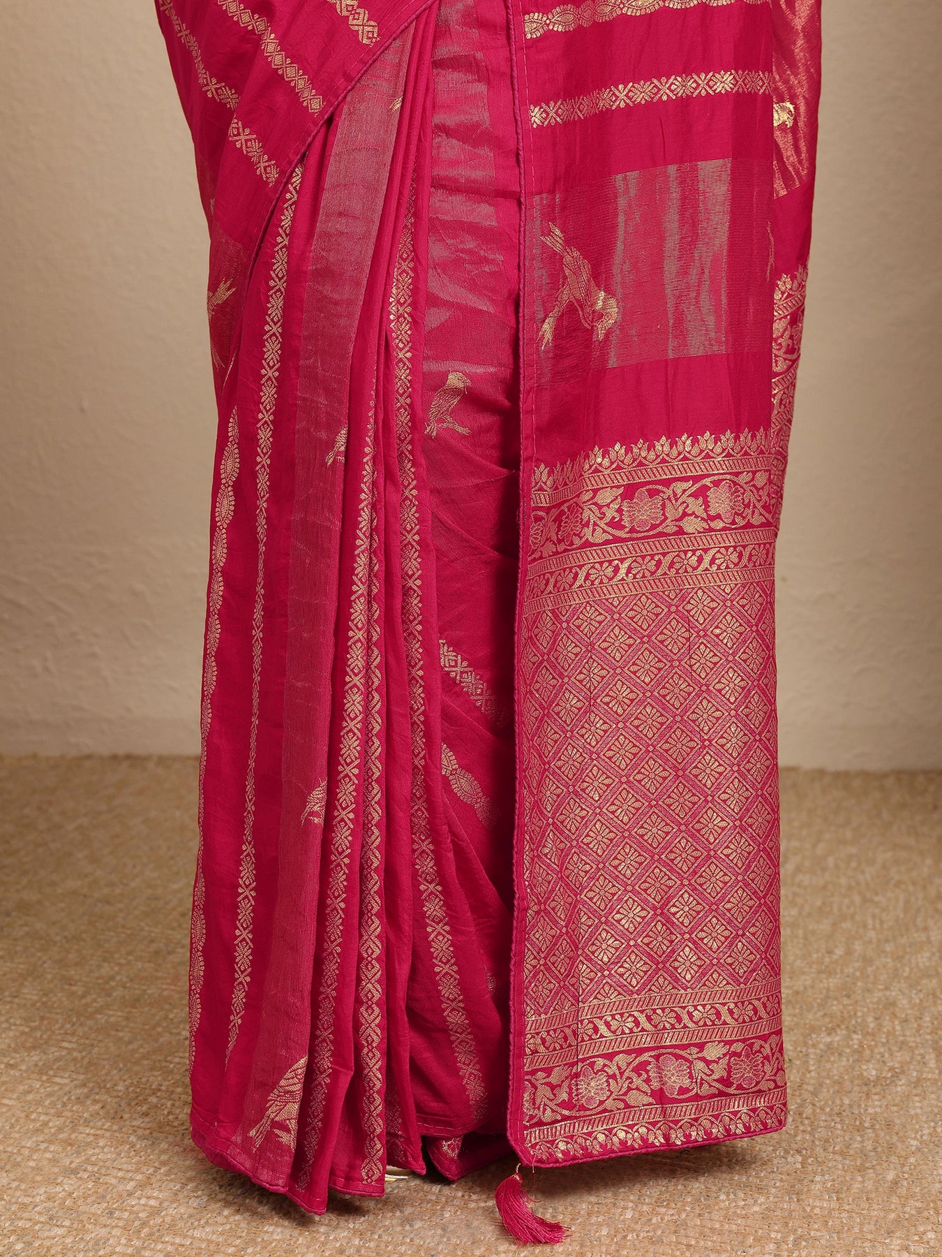 Pink Woven Design Banarsi Silk Blend Saree With Unstitched Blouse Piece