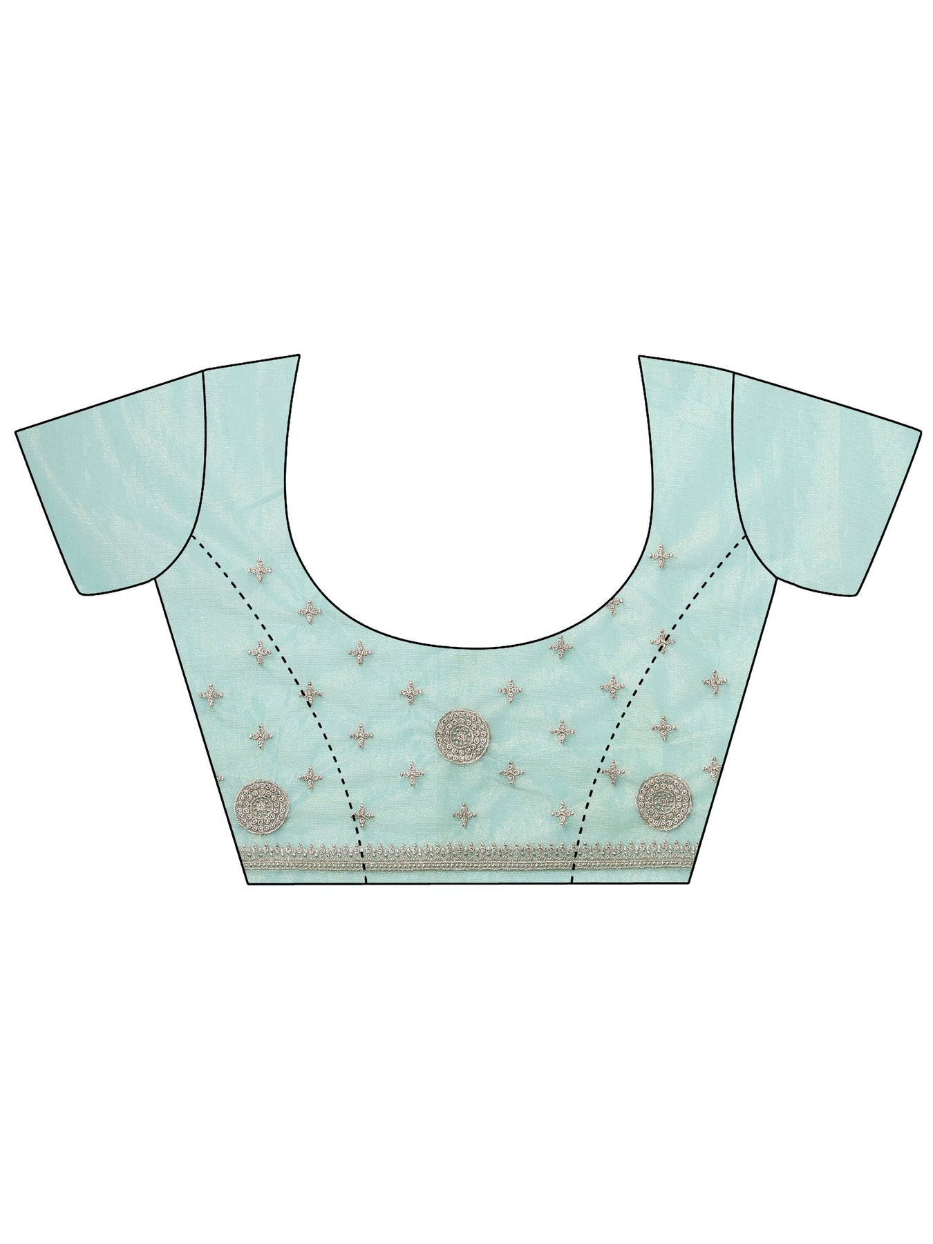 Turquoise Blue Embroidered Banarasi Nylon Saree With Unstitched Blouse Piece