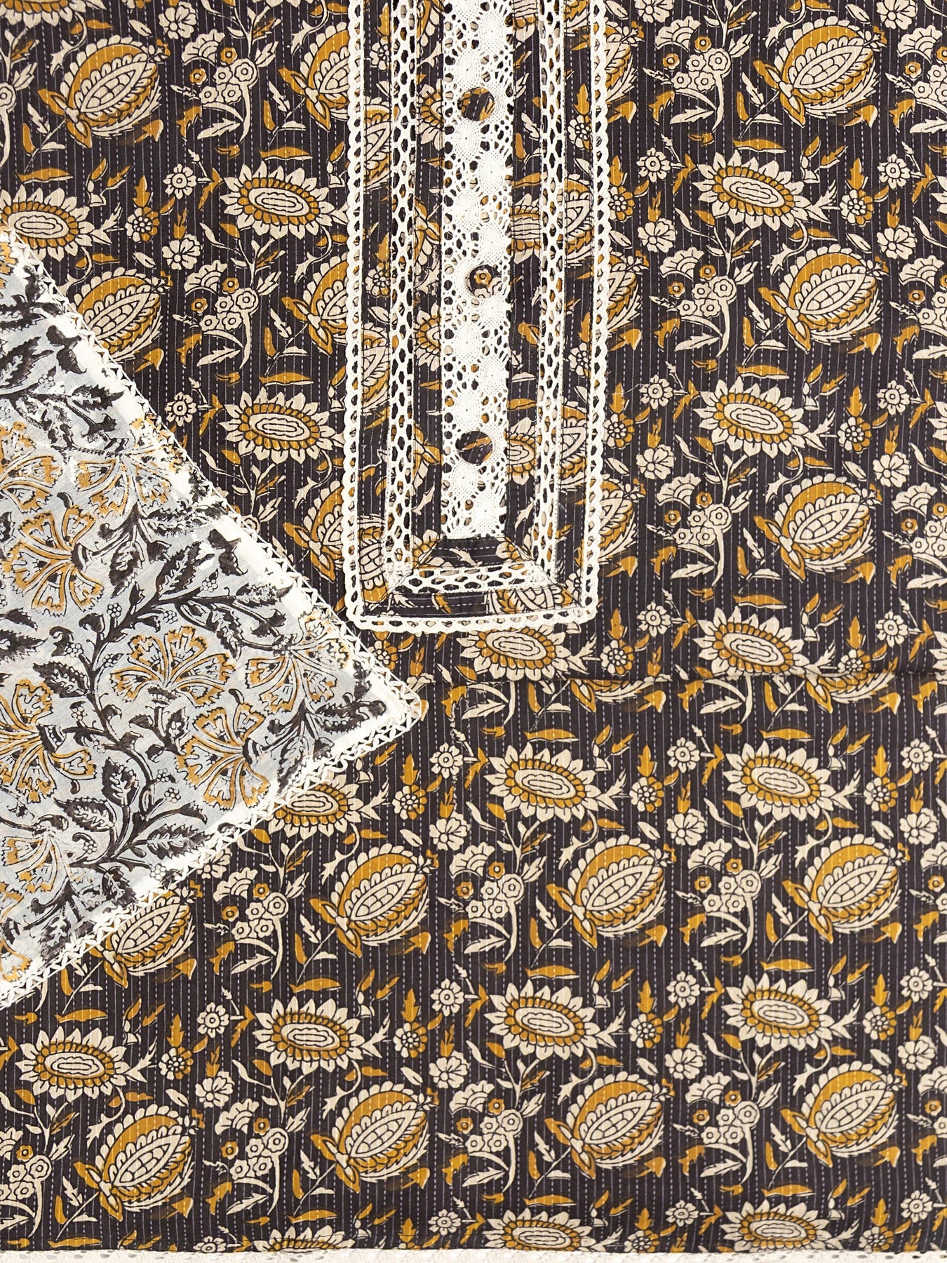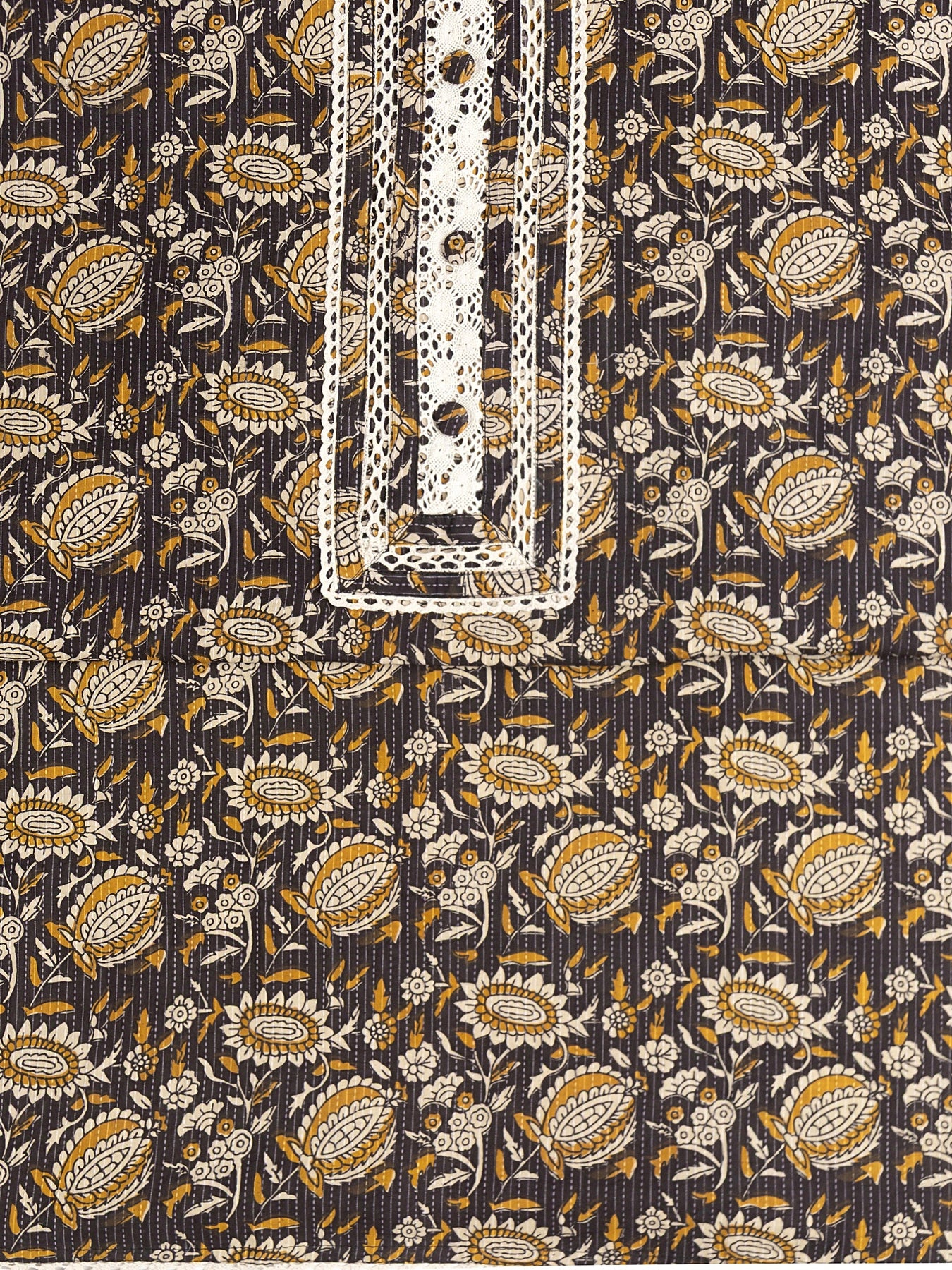 Black Floral Printed Cotton Dress Material With Dupatta