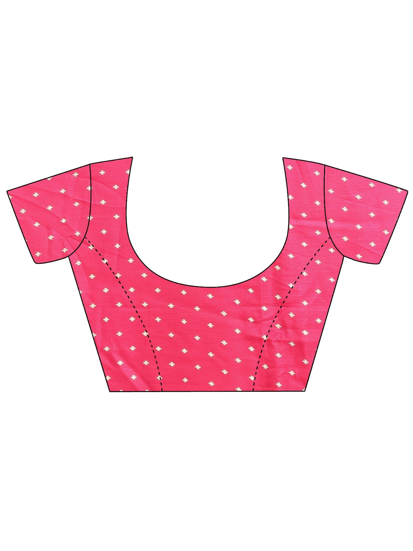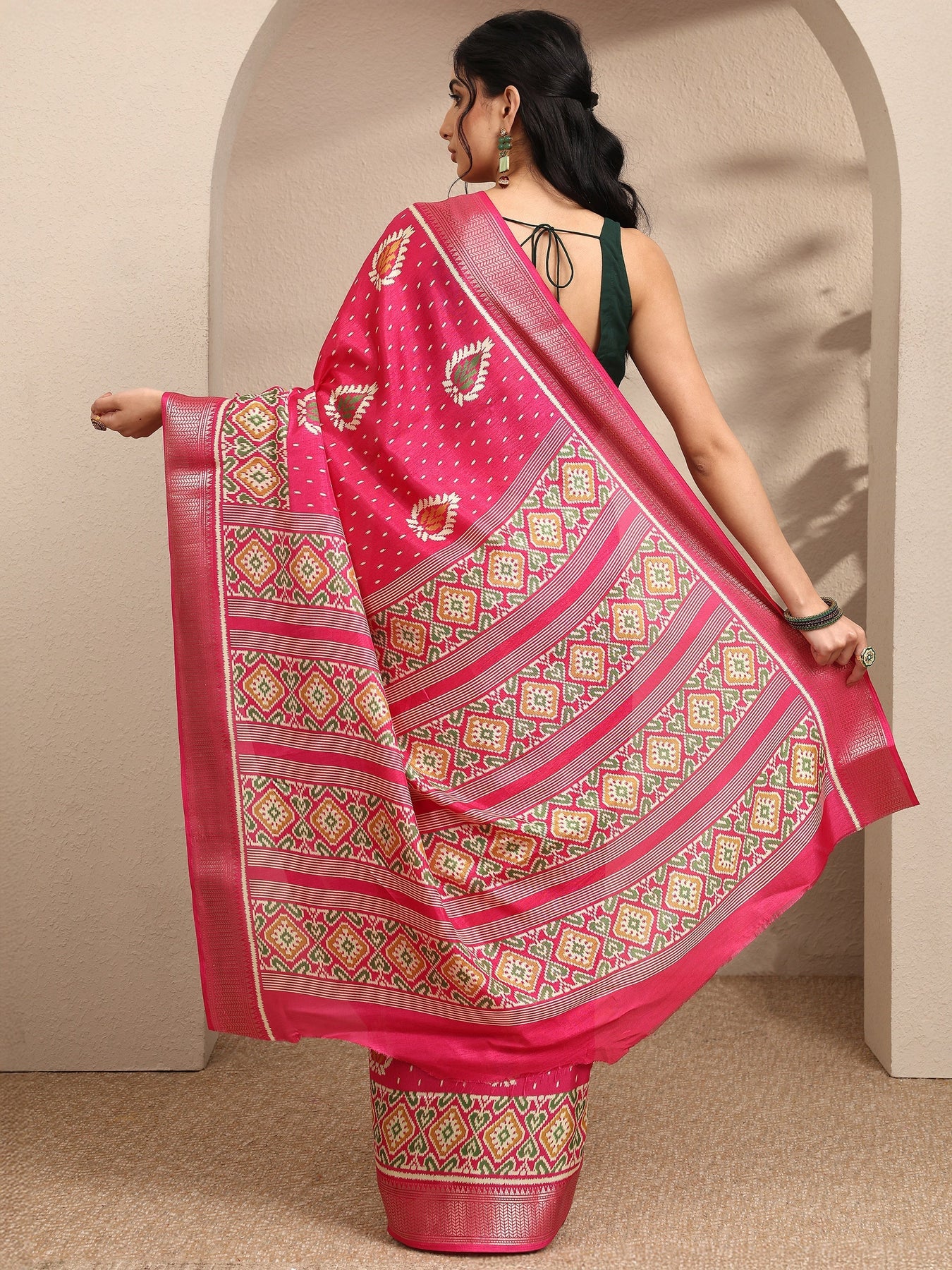 Pink Printed Silk Blend Saree With Unstitched Blouse Piece