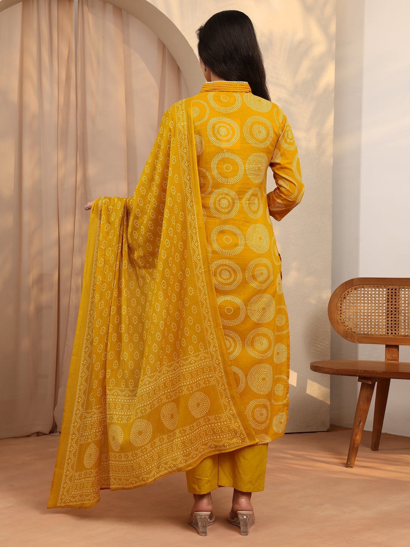 Mustard Bandhani Printed Cotton Suit Set With Dupatta