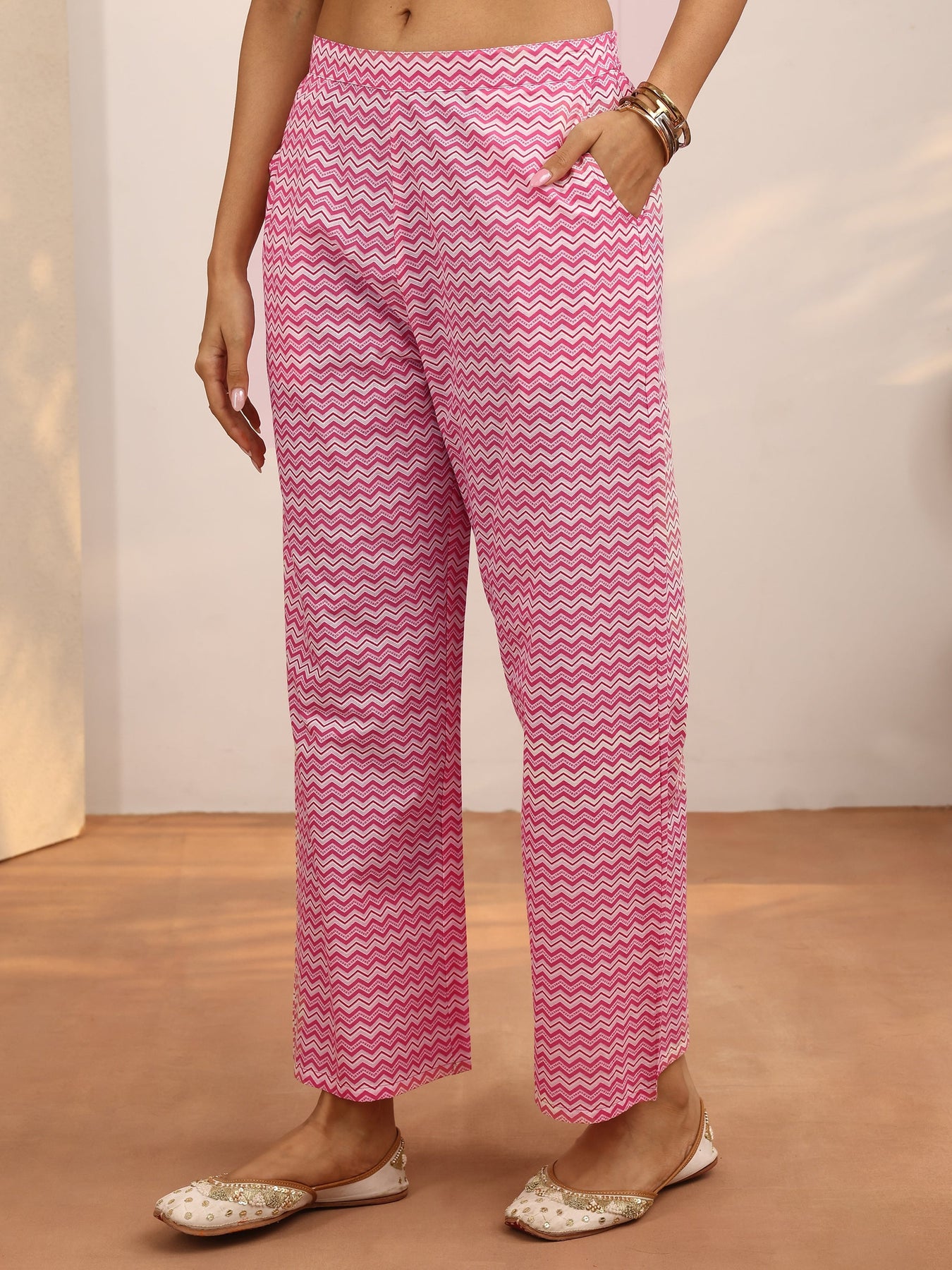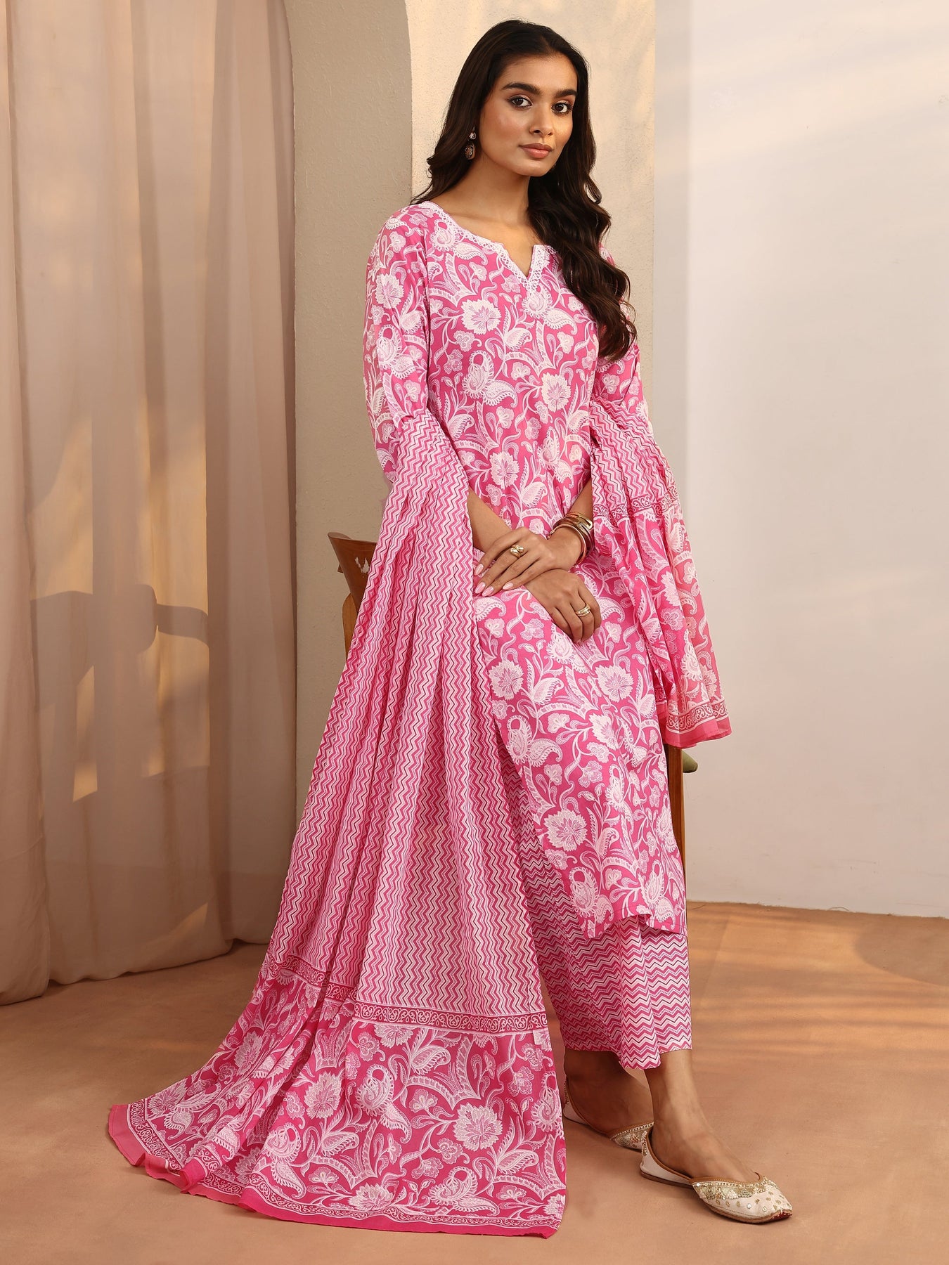 Pink Printed Cotton Straight Suit Set With Dupatta