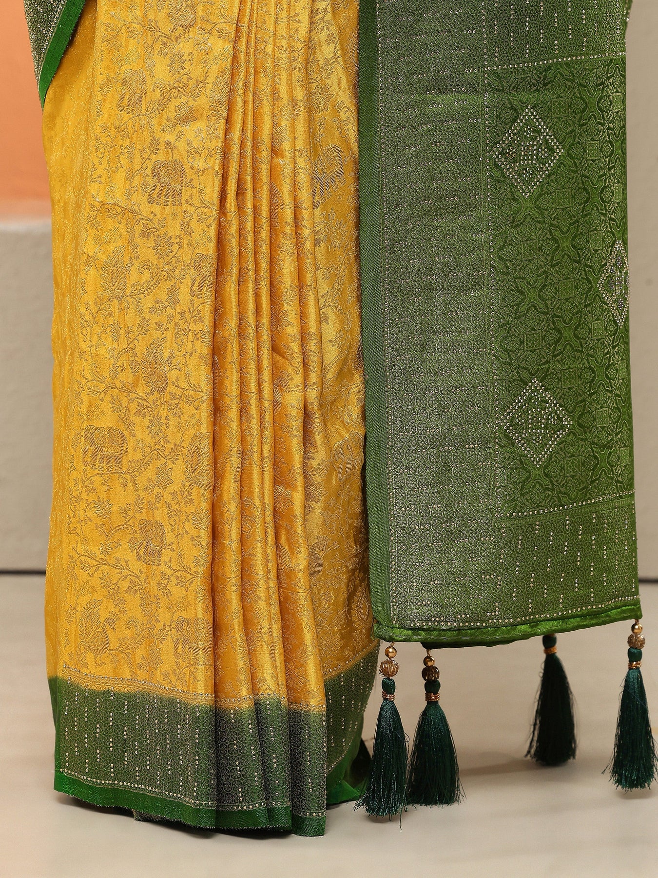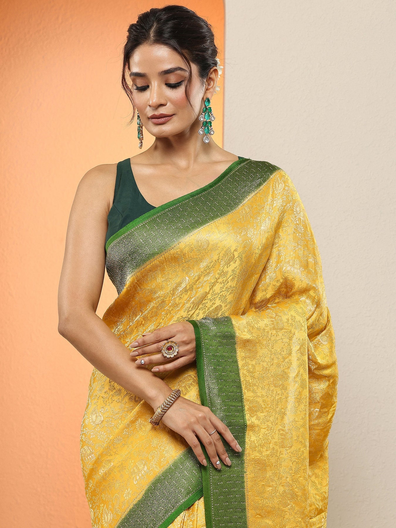 Mustard Woven Design Silk Blend Sarees With Unstitched Blouse Piece