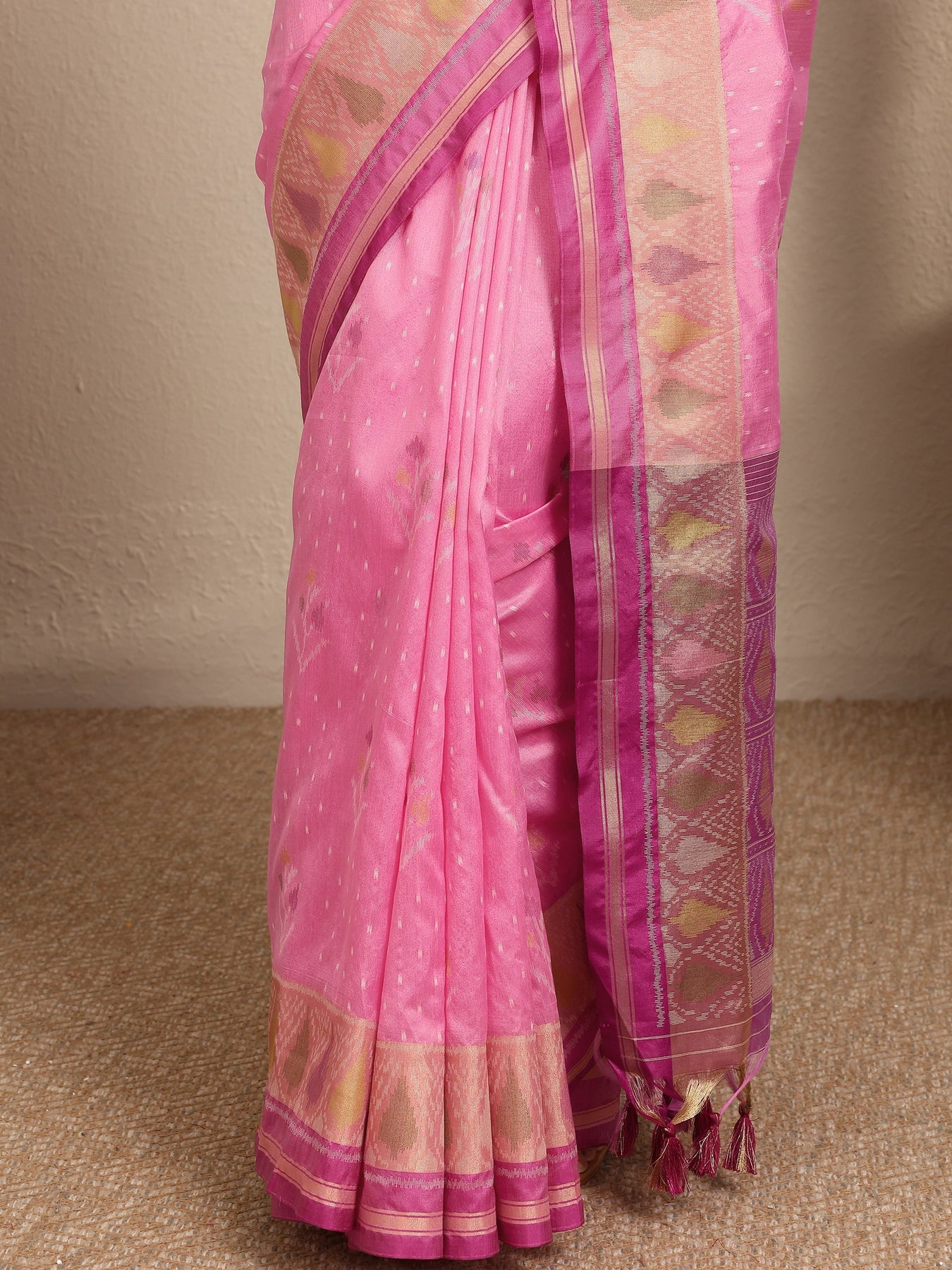 Pink Woven Design Banarsi Silk Blend Saree With Unstitched Blouse Piece