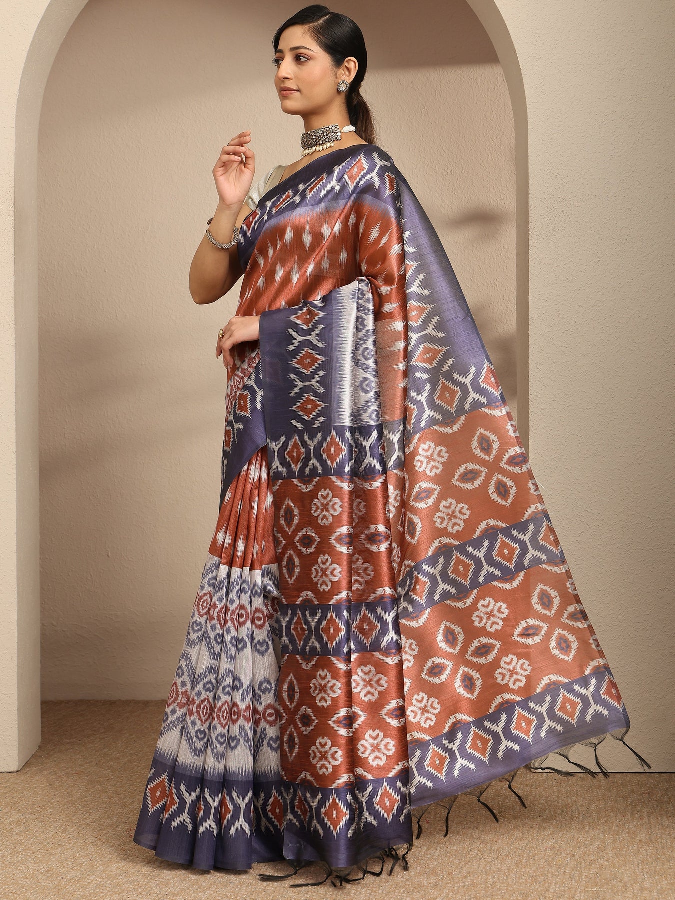 Rust Printed Silk Saree With Unstitched Blouse Piece
