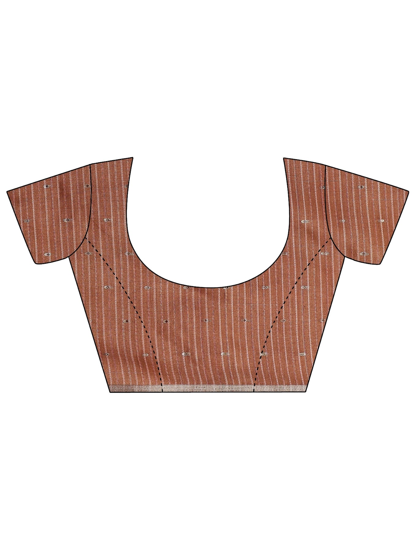 Our gold printed silk blend saree features captivating embellishments. Complemented with a Unstitched Blousepiece. This charming saree is perfect for festive occasions.